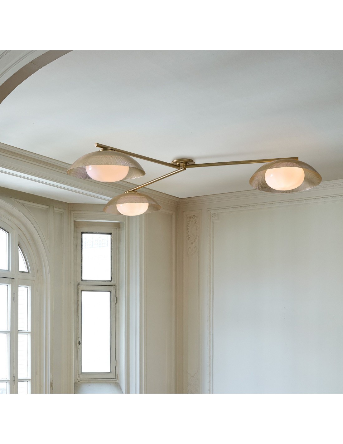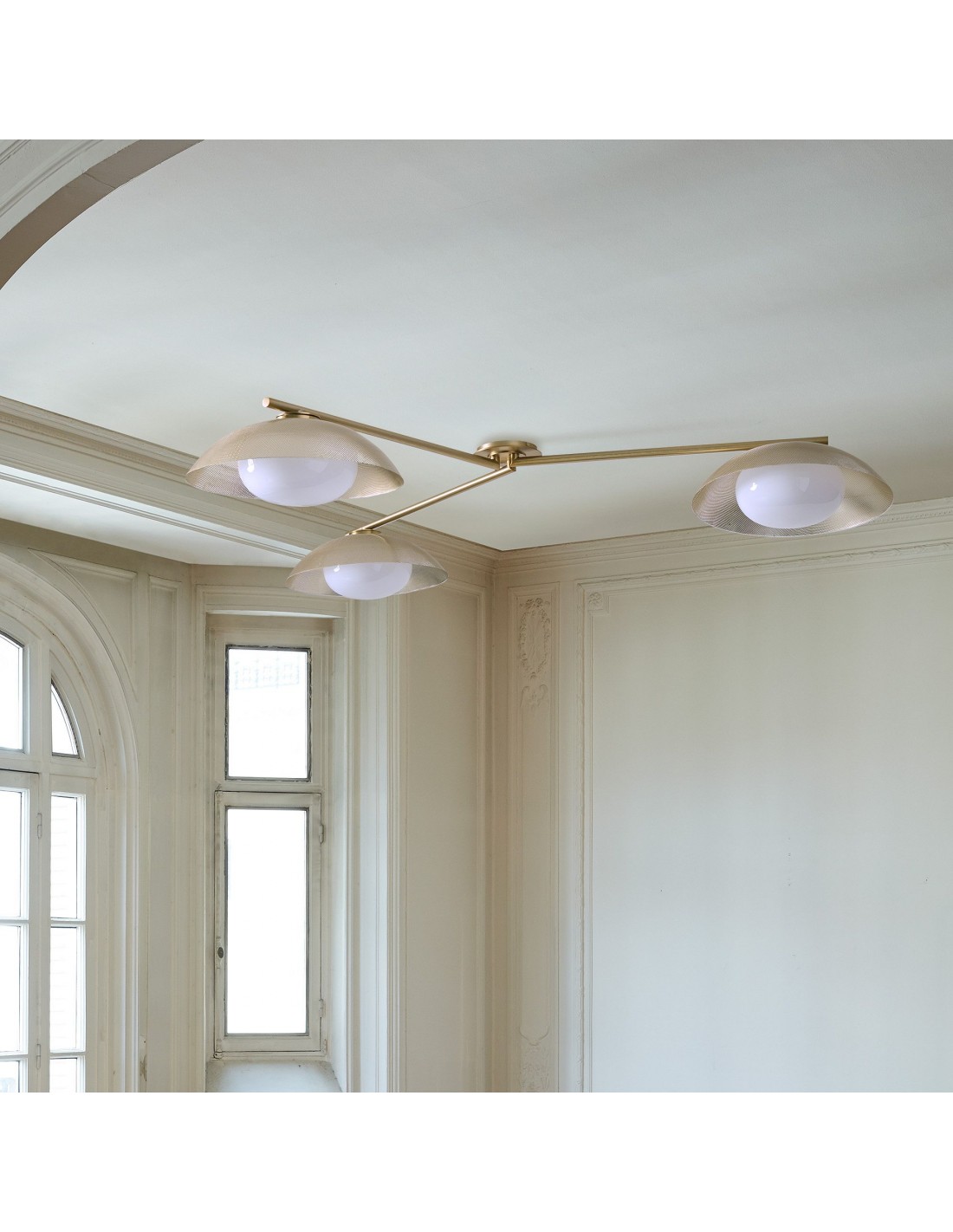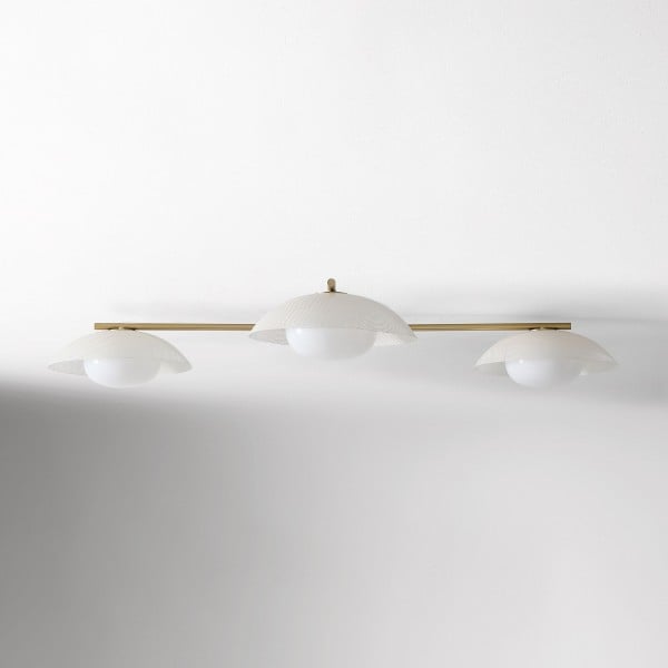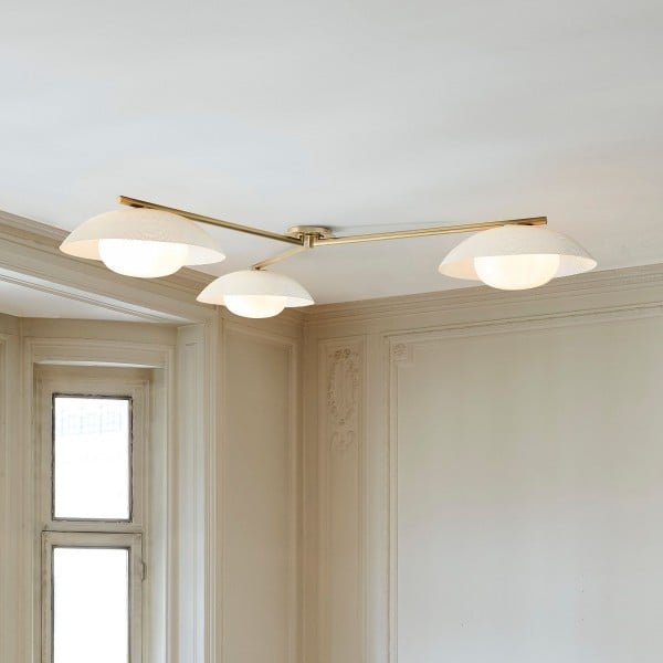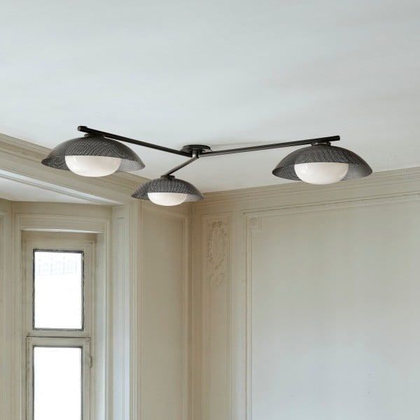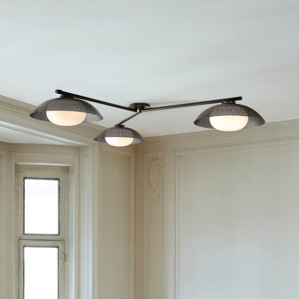 Verschönern Sie Ihr Interieur mit dieser eleganten dreiflammigen Einbau-Deckenleuchte. Ihre einzigartige, strukturierte Scheibe erzeugt im beleuchteten Zustand eine atemberaubende Atmosphäre. Diese Leuchte erhellt nicht nur Ihr Zuhause, sondern setzt auch ein stilvolles Design-Statement und verschönert jeden Raum.