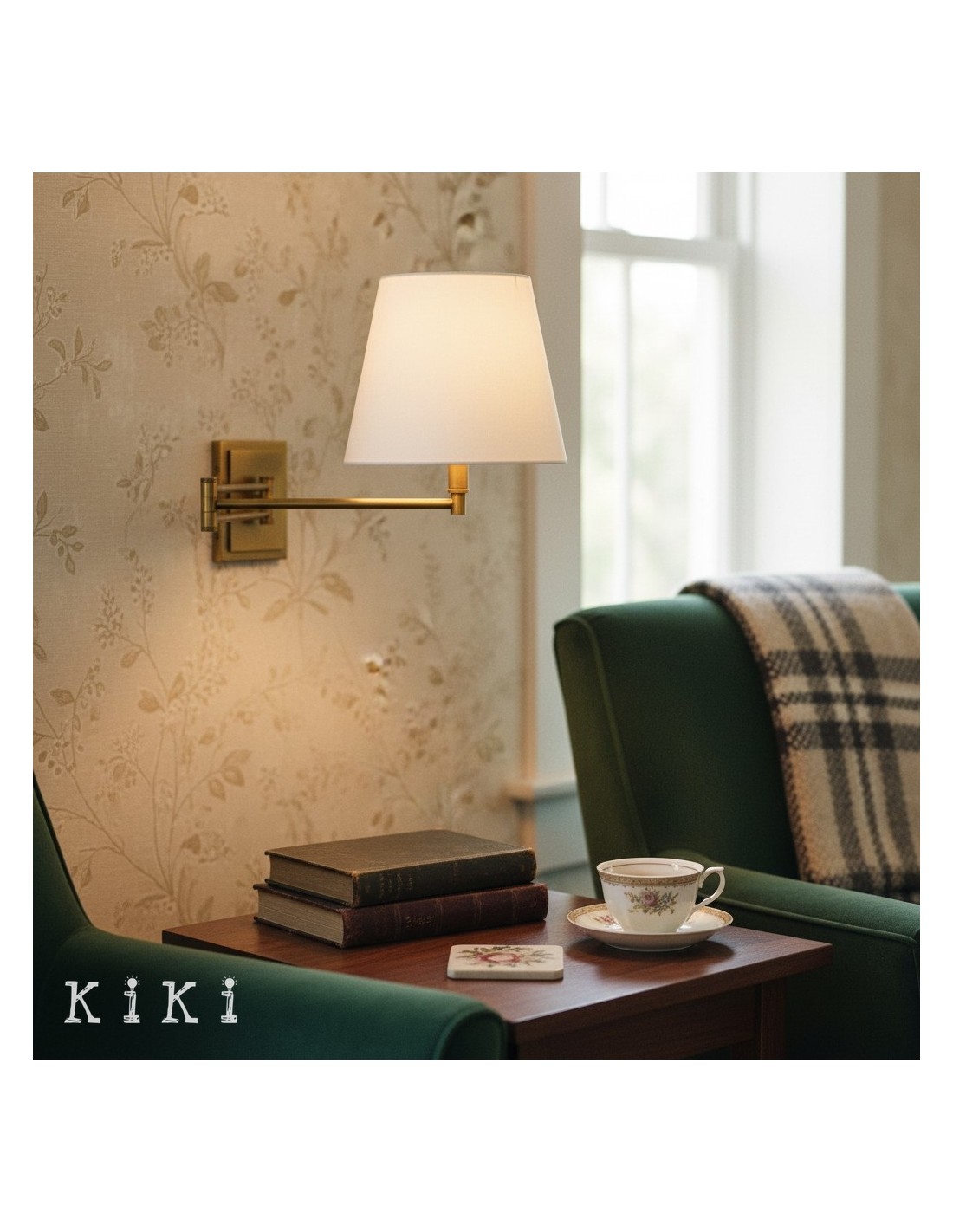 Verleihen Sie Ihren Wänden mit der Wandleuchte Arcuma mit verstellbarem Arm einen Hauch moderner Eleganz. Diese zeitgemäße Leuchte vereint die klare Linienführung eines Metallrahmens mit der weichen und einladenden Haptik eines hochwertigen Stoffschirms.