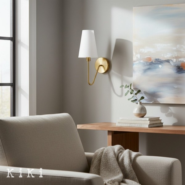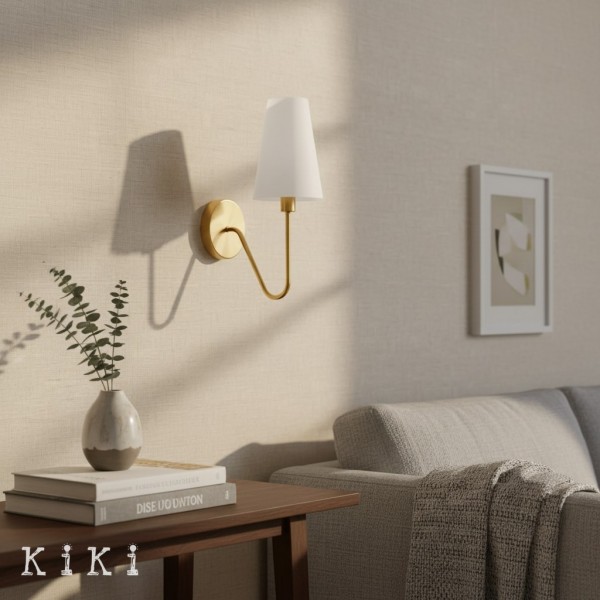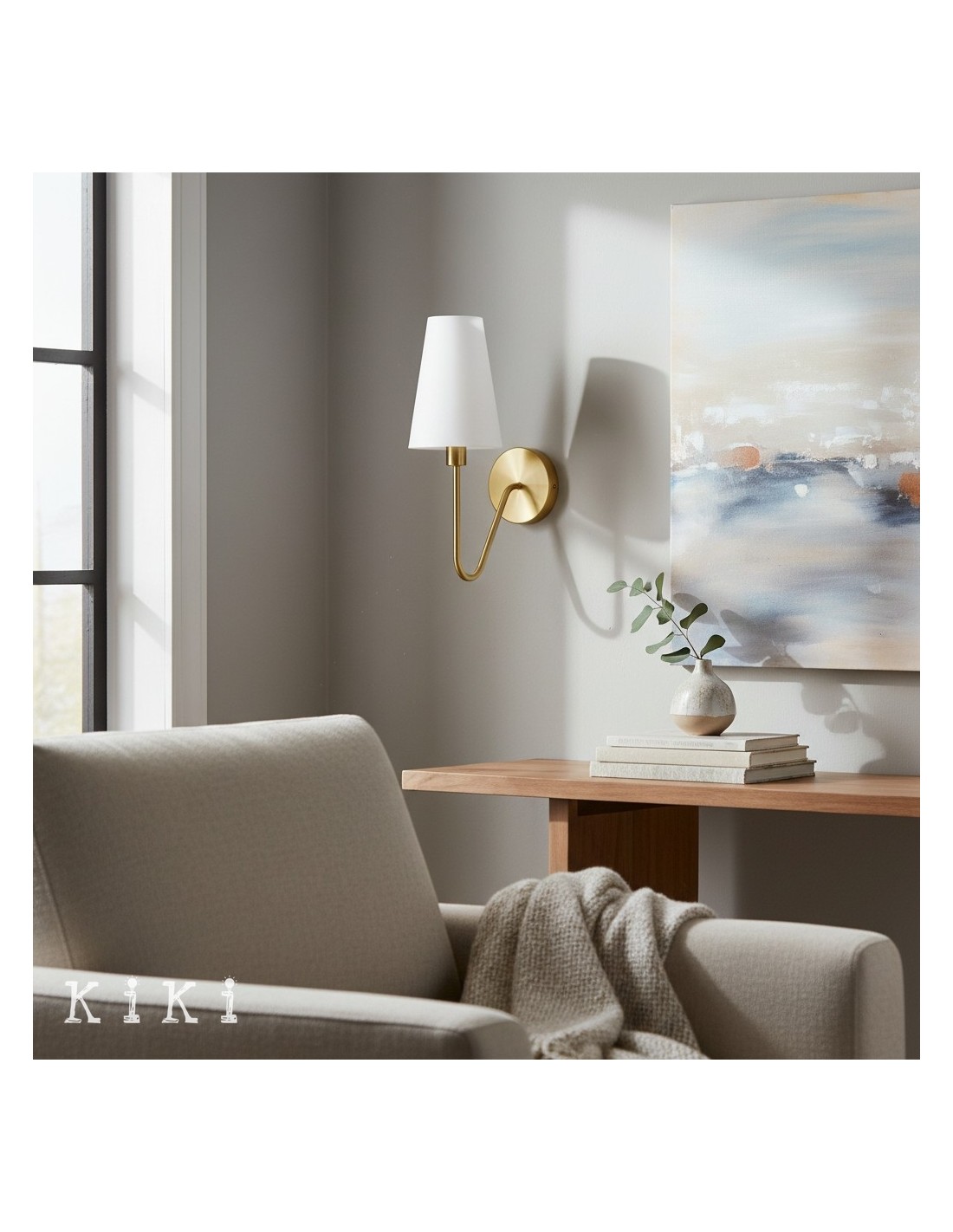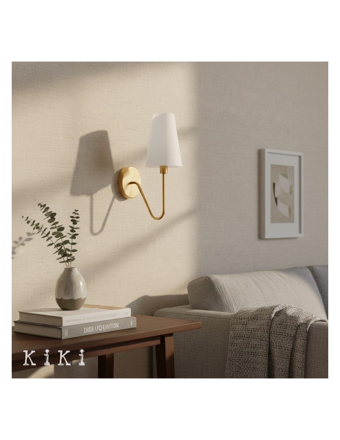 Diese Wandleuchte aus Metall im Vintage-Stil schafft eine warme und einladende Atmosphäre in jedem Raum. Mit ihrem wunderschönen, handgefertigten Stoffschirm und dem hochwertigen Kupferkorpus strahlt diese Leuchte zeitlose Eleganz und erstklassige Handwerkskunst aus.
