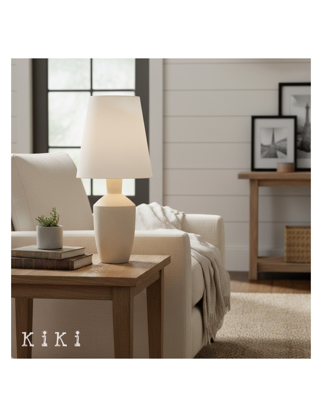 Verleihen Sie Ihrem Interieur mit der modernen Keramik-Tischleuchte Ceruna einen Hauch von Eleganz – ein raffiniertes Designobjekt, das skulpturale Kunst und funktionale Beleuchtung vereint. Der handgefertigte Korpus aus Terrakotta ist in verschiedenen Ausführungen erhältlich und wird durch einen schlichten Stoffschirm ergänzt, der ein sanftes, einladendes Licht verbreitet.