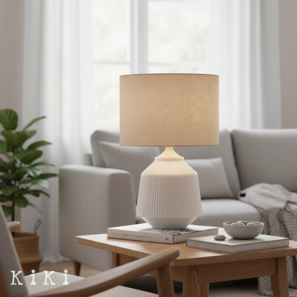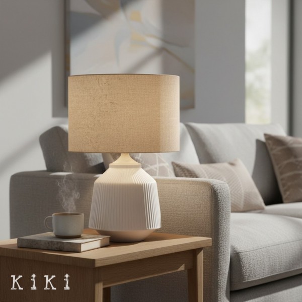 Die Keramik-Tischleuchte Ceruna Ripple besticht durch ihre skulpturale, geriffelte Oberfläche, die modernen Interieurs eine raffinierte optische Tiefe verleiht. Ihre ausgewogene Form unterstreicht die minimalistische Designsprache und setzt gleichzeitig einen subtilen künstlerischen Akzent. Der Stoffschirm streut das Licht sanft und erzeugt ein warmes, angenehmes Ambiente, das sich ideal für den Alltag eignet.