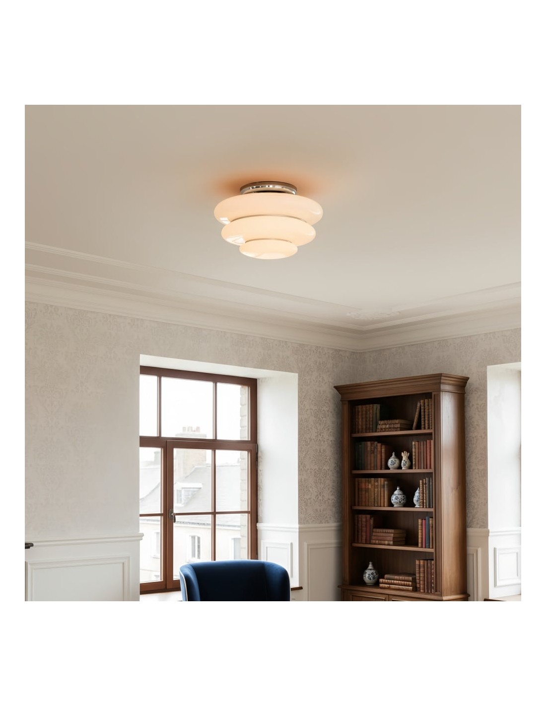 Die Deckenleuchte Cirren besticht durch ihre skulpturale, kreisförmige Form, die von geometrischen Schichten inspiriert ist und einen raffinierten visuellen Rhythmus an der Decke erzeugt. Ihr Design mit gestapelten Ringen streut das Licht sanft und sorgt für eine ausgewogene, stimmungsvolle Beleuchtung, die moderne Interieurs wie Wohnzimmer und Eingangsbereiche aufwertet.