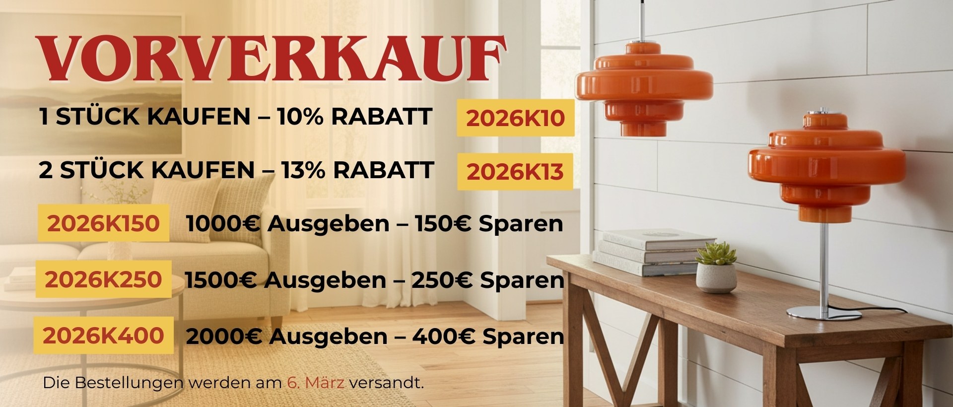 Während der chinesischen Neujahrsfeiertage erhalten Sie bis zu 20% Rabatt auf Ihre Bestellungen. Ihre Bestellung wird jedoch erst nach Ablauf des Vorverkaufszeitraums bearbeitet und ab dem 6. März versandt. Dear customers, please pay attention.
