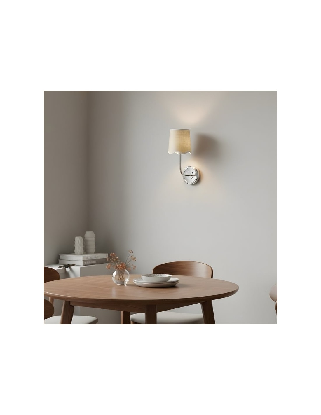 Diese moderne Wandleuchte mit ihrem elegant geschwungenen Metallarm und dem weichen Stoffschirm, der warmes, diffuses Licht spendet, verleiht Ihren Räumen ein stilvolles Ambiente. Gefertigt aus hochwertigen Materialien und mit klaren Linien, vereint sie zeitgenössischen und klassischen Stil. Ideal als Akzentbeleuchtung in Wohnzimmern, Schlafzimmern, Fluren oder Eingangsbereichen.