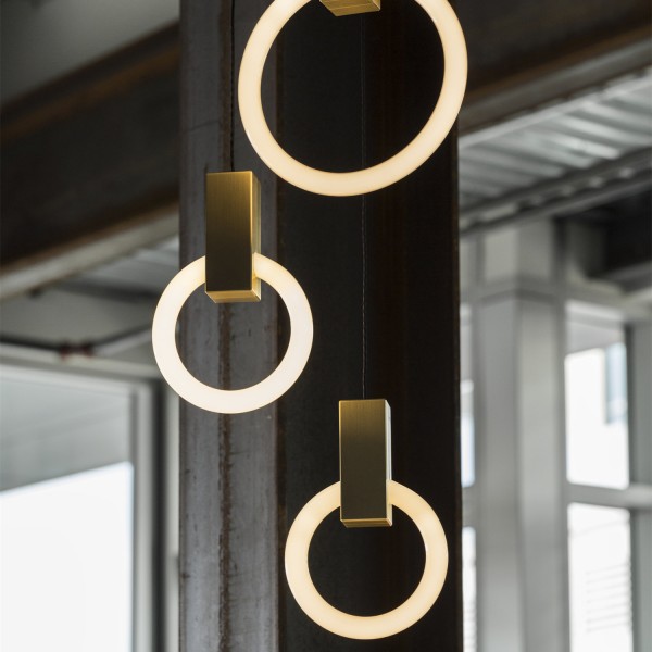 Halo wurde ursprünglich als grafische Interpretation von Sprudeln konzipiert und ist eine Serie von auffälligen Lampen, die vom warmen Schein ihres Leuchtkörpers inspiriert sind. Das modulare System ermöglicht es, Halo-Pendelleuchten in einer Vielzahl von Kompositionen aufzuhängen – ähnlich anspruchsvoller, hängender Kunstwerke, sowohl beleuchtet als auch ruhend.