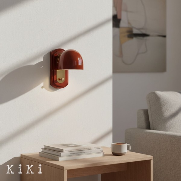Die Wandleuchte besticht durch ihren glatten Glasschirm mit skulpturaler, leicht abgerundeter Form und minimalistischem Profil. Sie spendet gleichmäßiges, warmes Licht und schafft so eine beruhigende und einladende Atmosphäre in Schlafzimmern, Fluren oder Wohnbereichen.