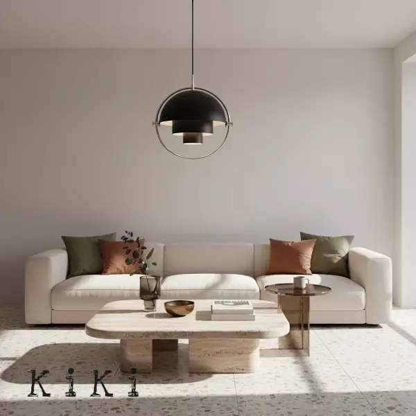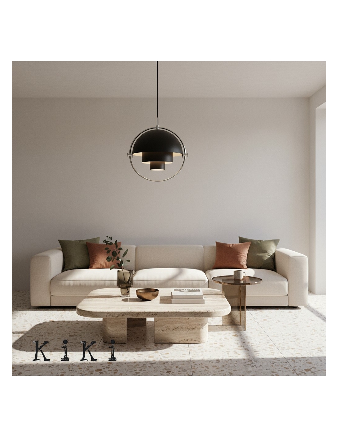 Die Pendelleuchte Multi Lite vereint Flexibilität und optische Wirkung mit modernen Interieurs. Ihre mehrlagigen Metallschirme lassen sich einzeln verstellen, sodass Sie die Lichtrichtung und das Erscheinungsbild der Leuchte aus verschiedenen Blickwinkeln individuell anpassen können.