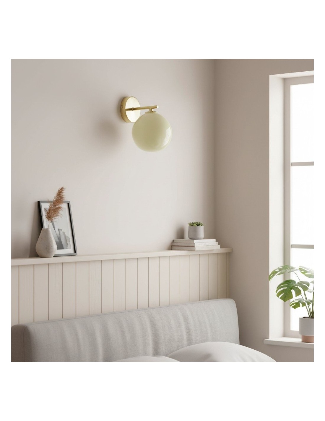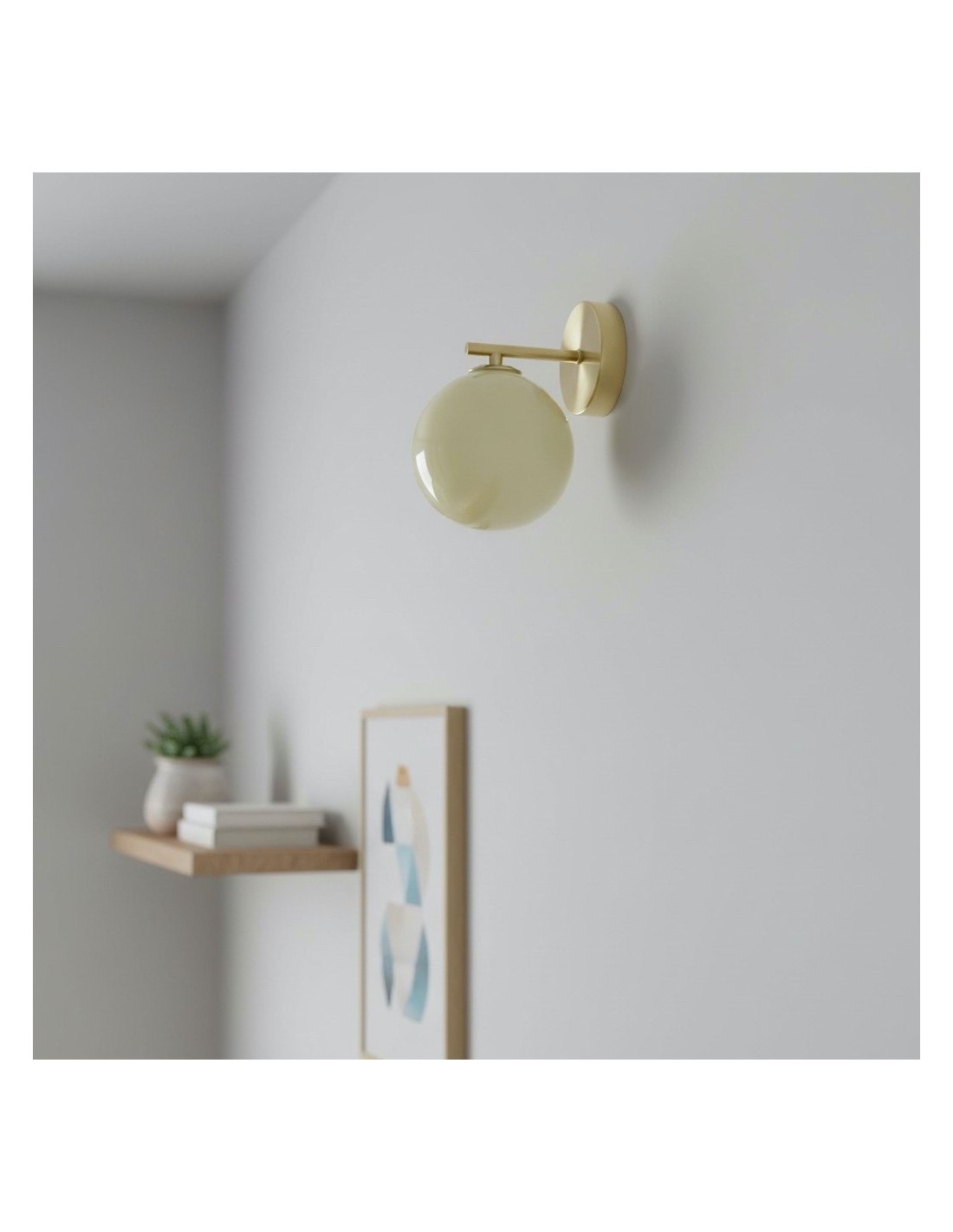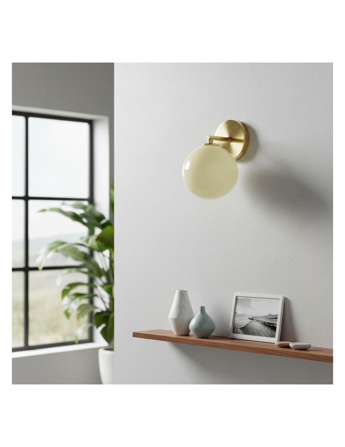 Diese Wandleuchte aus Opalglas besticht durch einen perfekt kugelförmigen, mattierten Opalglasschirm, der ein sanftes, diffuses und einladendes Licht erzeugt. Der minimalistische Metallsockel schafft eine harmonische Verbindung von Form und Funktion. Sie eignet sich ideal zur Beleuchtung von Fluren, als Blickfang neben dem Bett oder als stimmungsvolle Beleuchtung im Wohnzimmer.