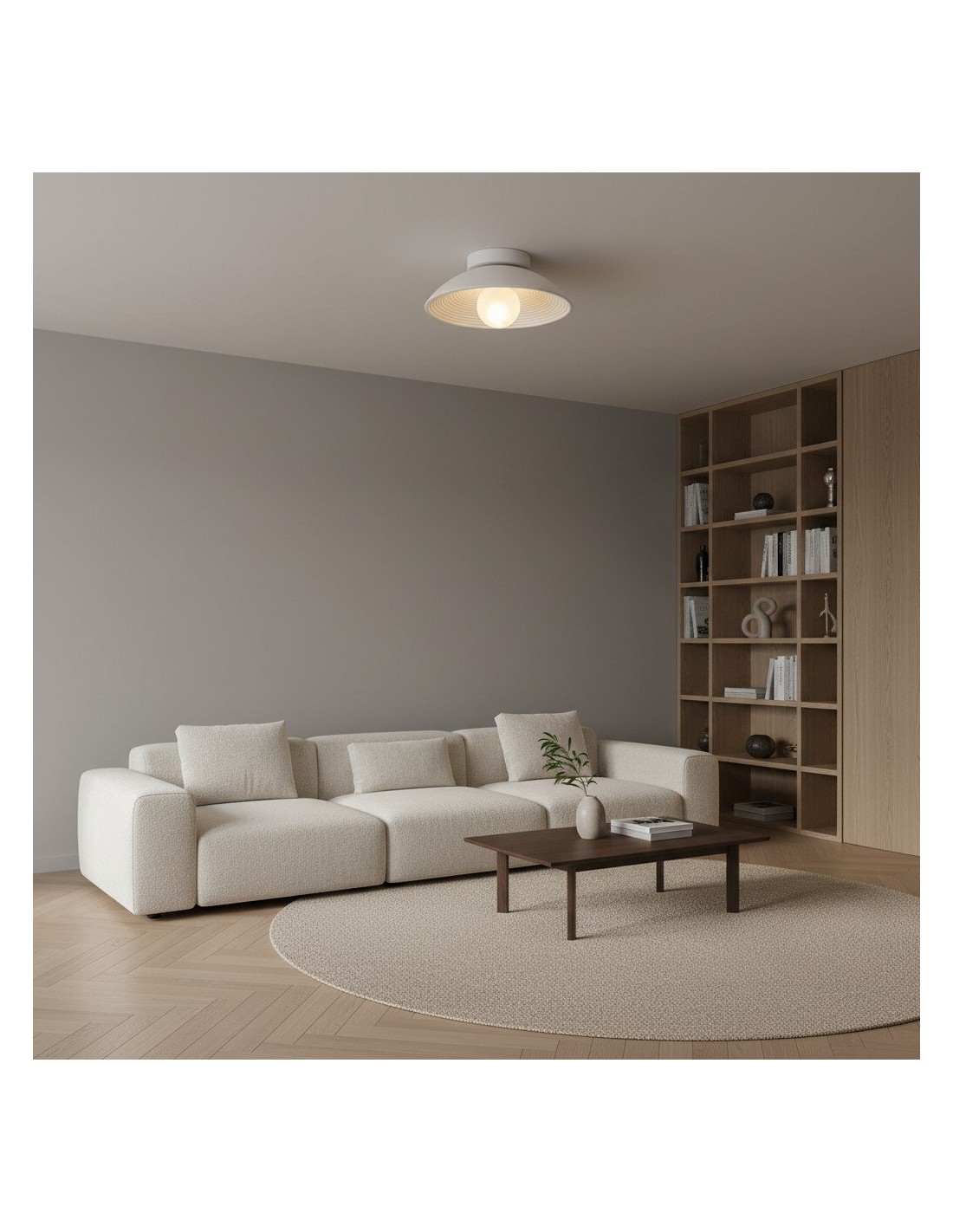 Die Deckenleuchte Ovalune besticht durch ihre organische, skulpturale Form mit strukturierter Oberfläche, die Tiefe und Charakter verleiht. Ihre sanft geschwungene Silhouette sorgt für eine gleichmäßige Lichtverteilung und schafft so eine ruhige, einladende Atmosphäre. Als flache Deckenleuchte konzipiert, eignet sie sich ideal für Schlafzimmer, Wohnzimmer, Flure und minimalistisch eingerichtete Räume.