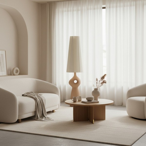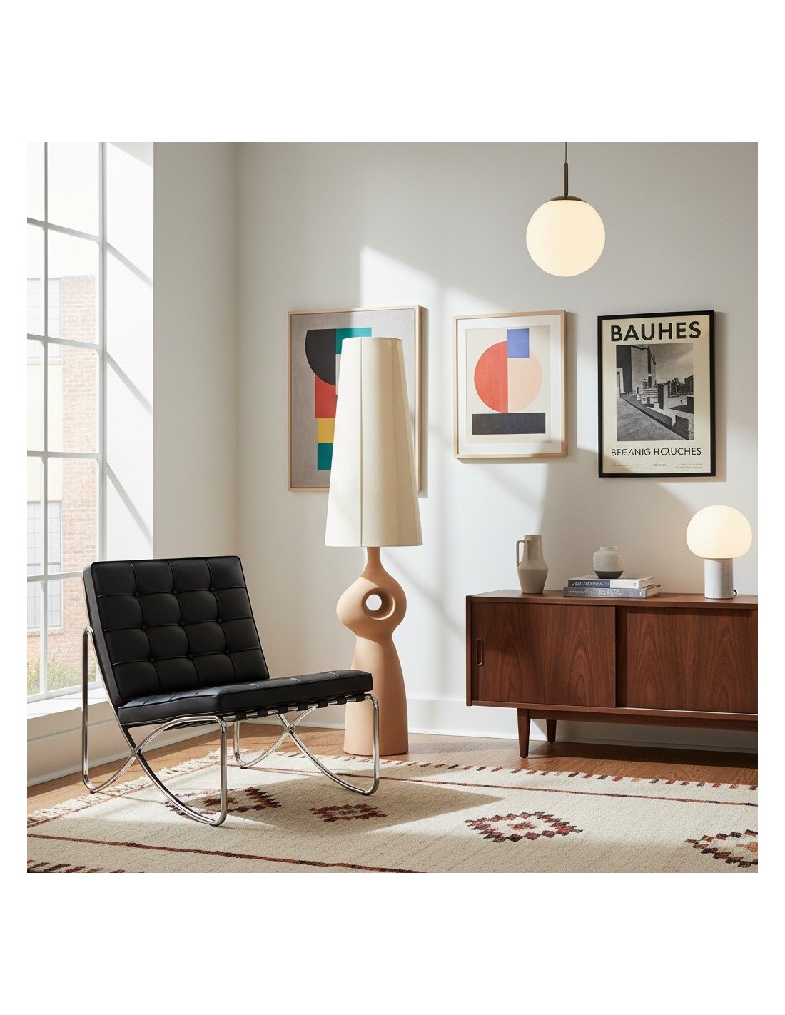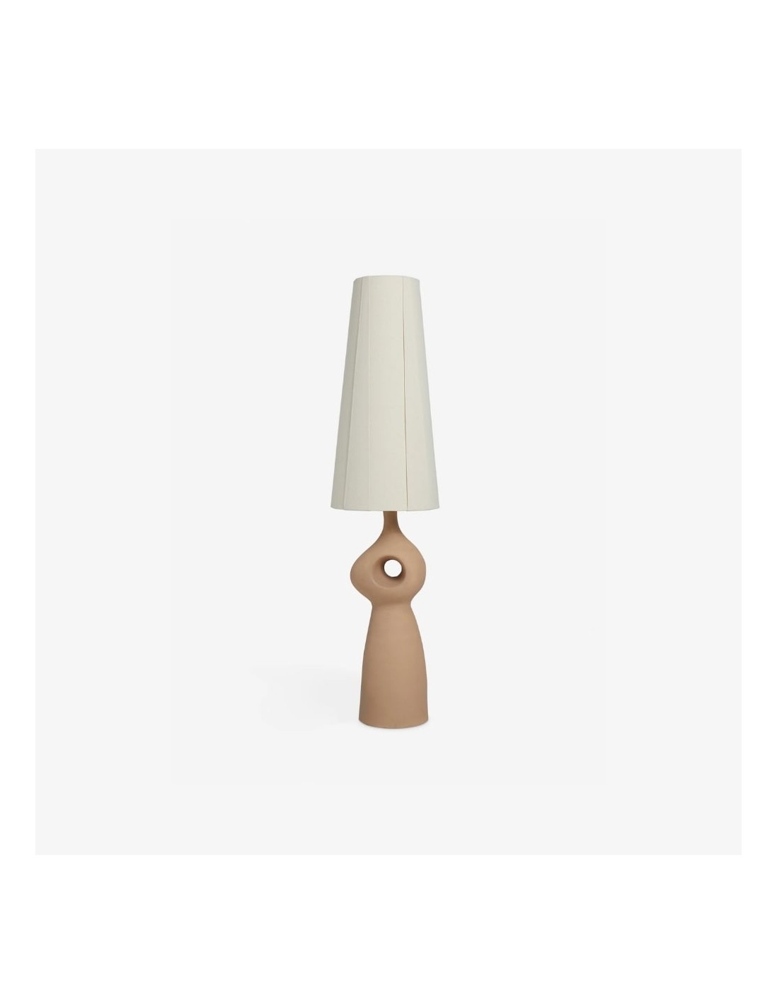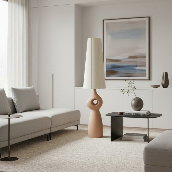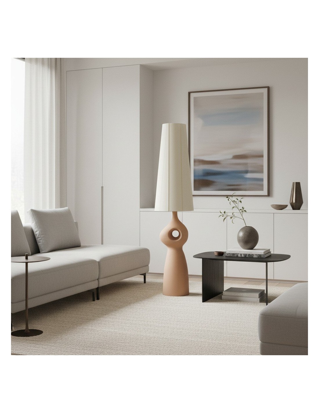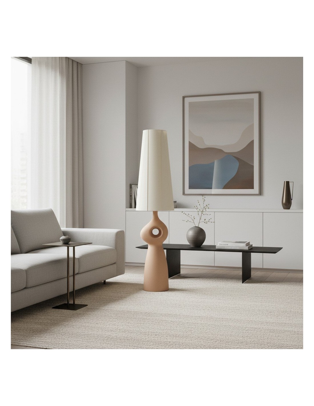Bringen Sie mit der skulpturalen Keramik-Stehleuchte Pryssa funktionale Kunst in Ihr Zuhause. Diese Stehleuchte besticht durch einen eleganten Keramikfuß mit organischer Silhouette und einem markanten Ausschnittdesign, das im beleuchteten Zustand verspielte Schatten wirft.