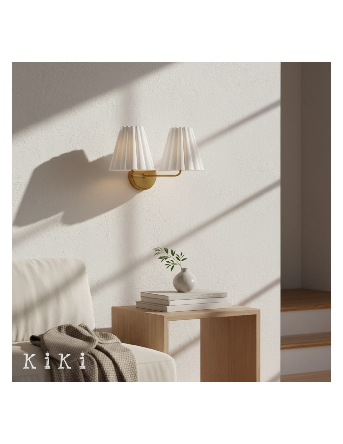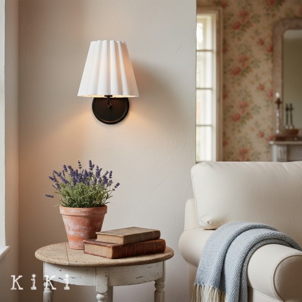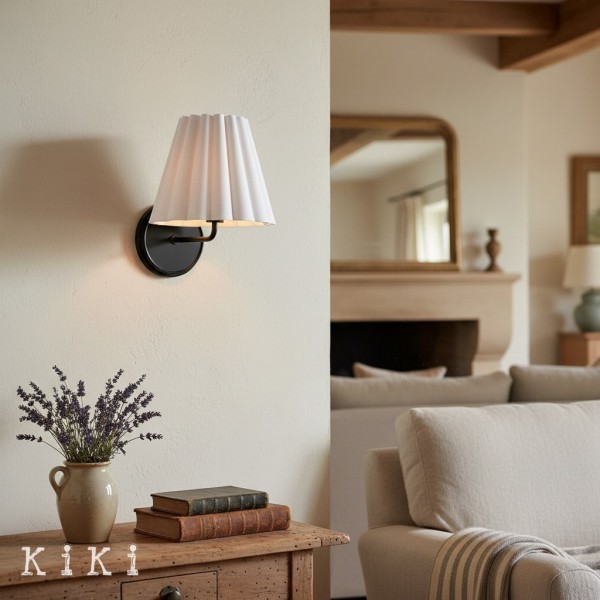 Verleihen Sie Ihrem Interieur mit dieser Wandleuchte einen Hauch von Eleganz – eine perfekte Verbindung von künstlerischem Design und funktionaler Beleuchtung. Die Leuchte besticht durch ihren eleganten, plissierten Leinenschirm, der auf einem skulpturalen Metallgestell ruht. Ihre strukturierte Oberfläche verleiht jedem Raum eine moderne und zugleich raffinierte Note.