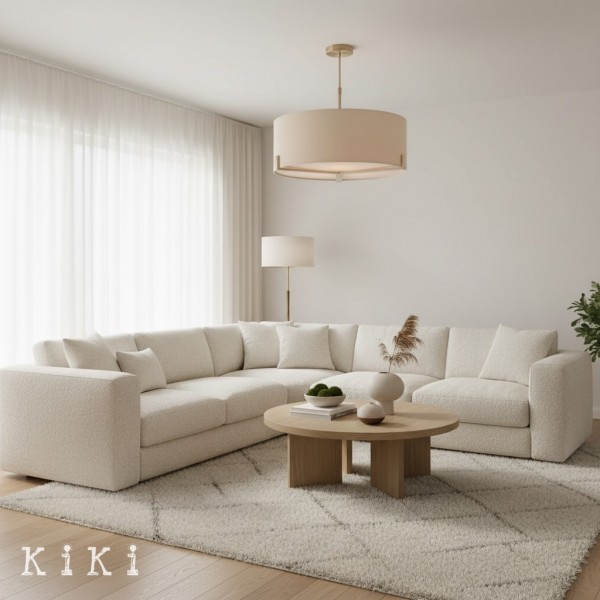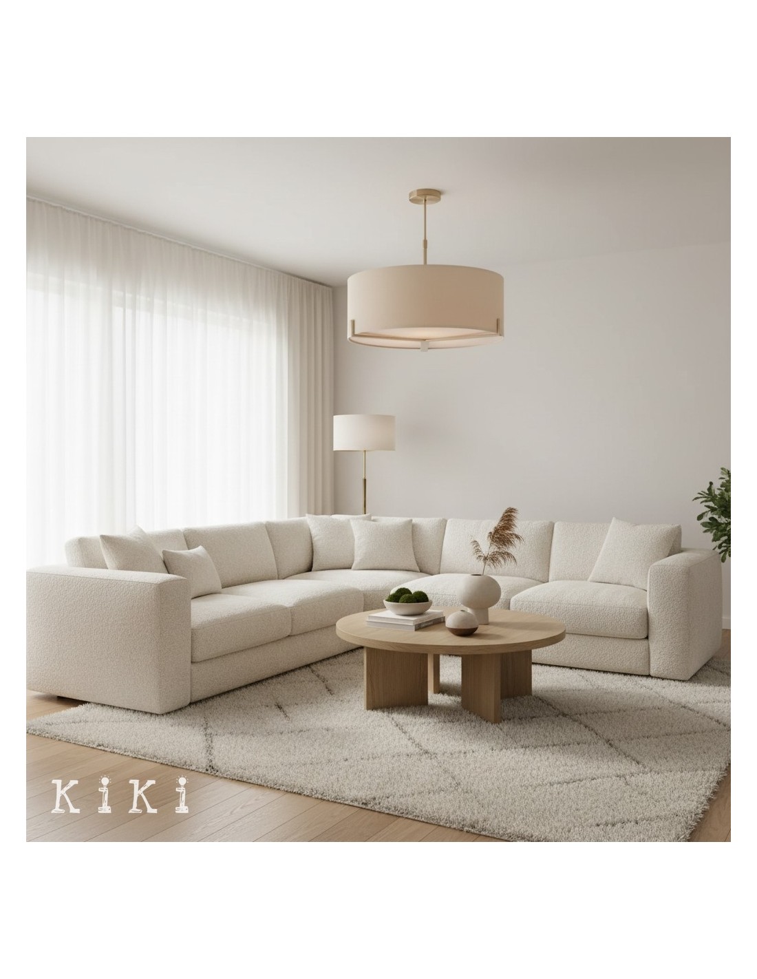 Die dreiflammige Pendelleuchte ist ein leuchtendes Herzstück, das durch die perfekte Kombination aus hochwertigen Materialien und elegantem Design die Eleganz von Innenräumen neu definiert. Die Leuchte besticht durch ihre schlichte Metallstruktur und die hochwertigen Stoffschirme und bietet eine Ästhetik, die modern und zugleich zeitlos ist.