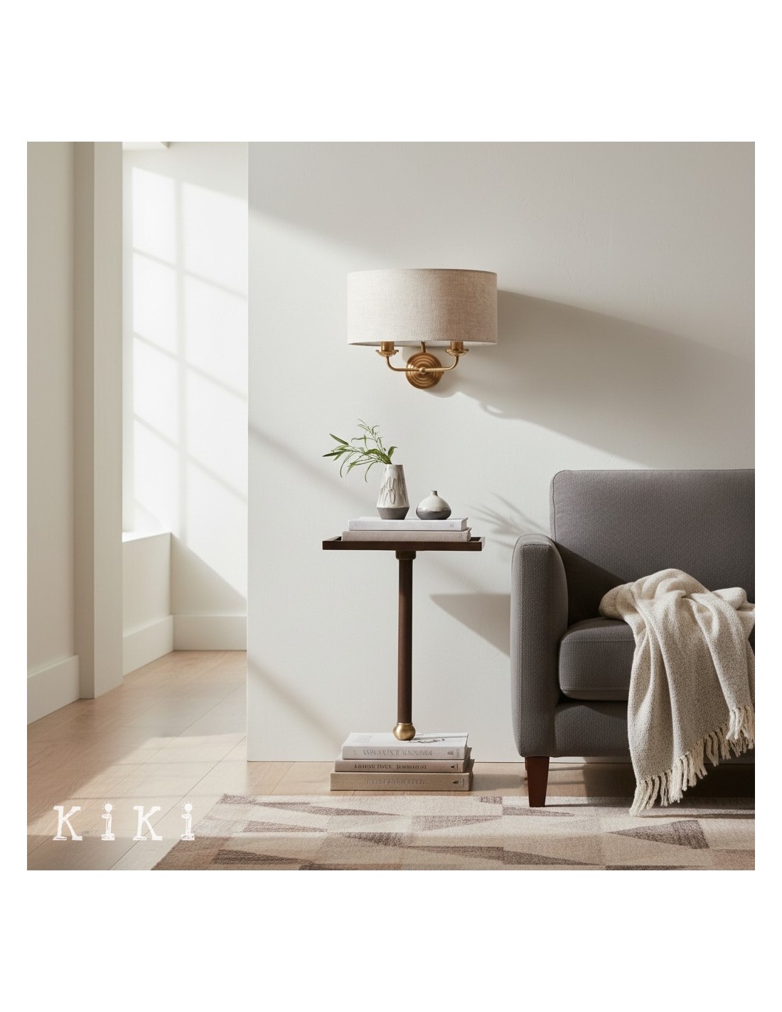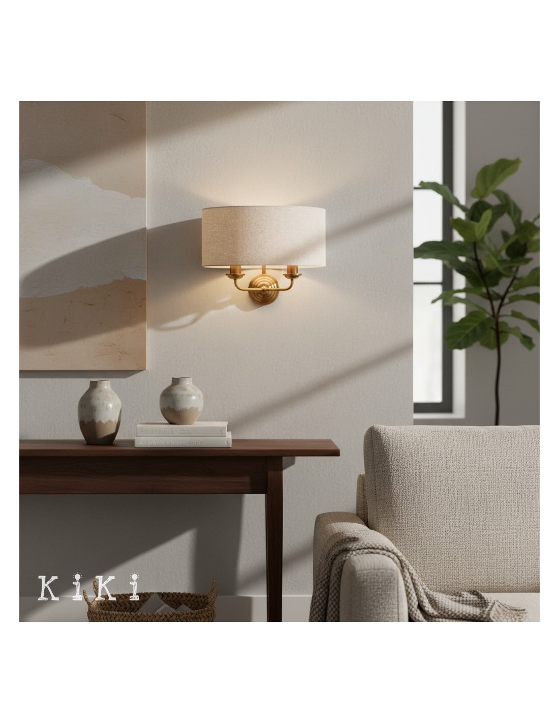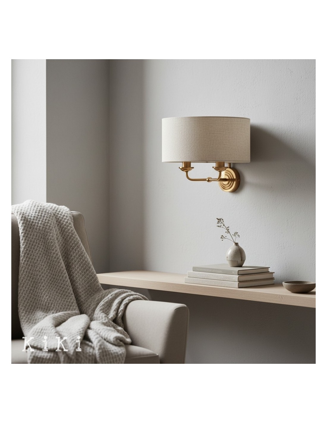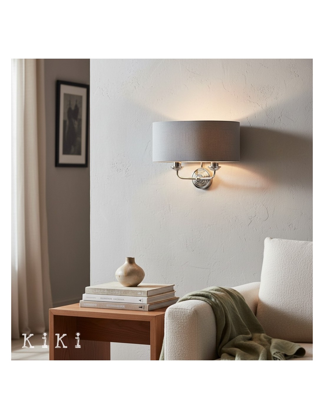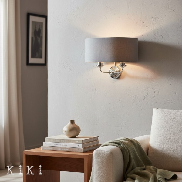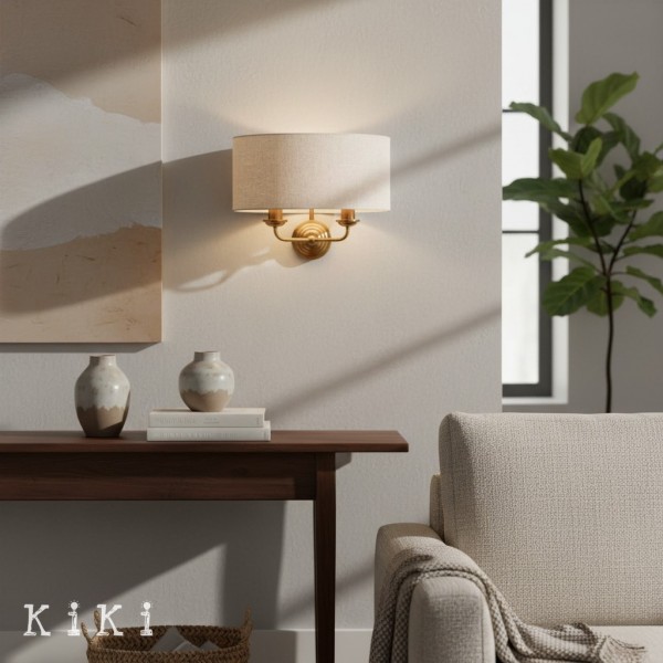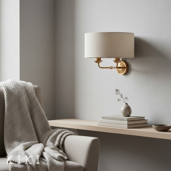 Die Wandleuchte verleiht jedem Raum zeitlose Eleganz. Dieses exquisite Schmuckstück vereint gekonnt einen weichen Stoffschirm mit einer schlanken Metallstruktur und schafft so eine harmonische Ästhetik, die sowohl zu traditionellen als auch zu modernen Einrichtungsstilen passt.