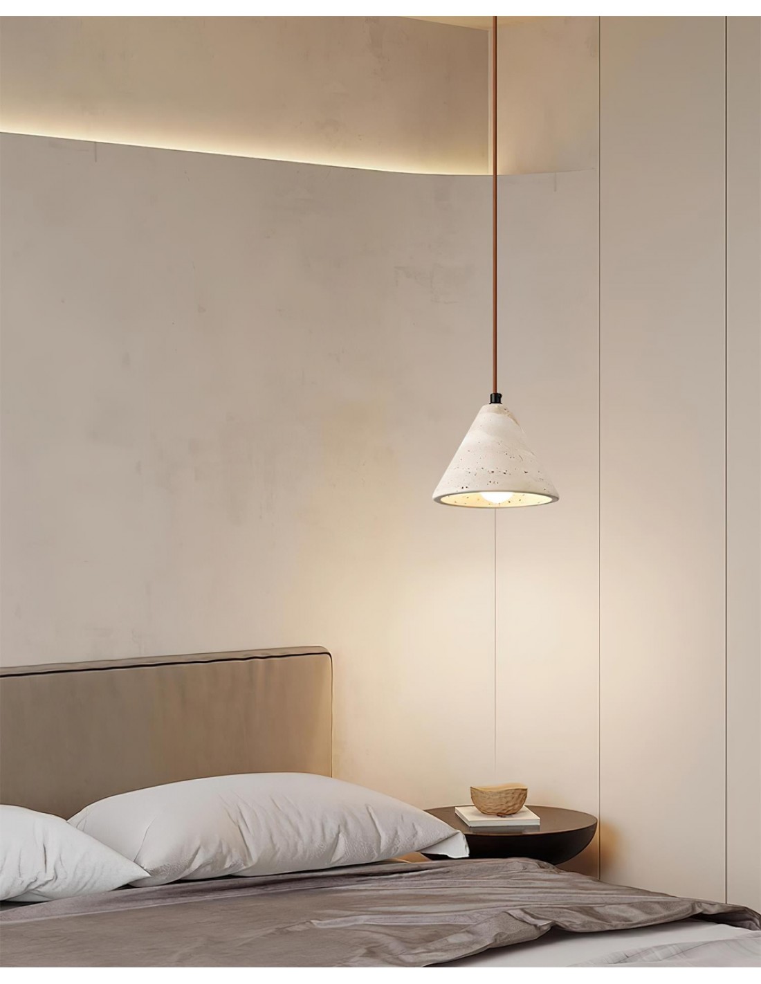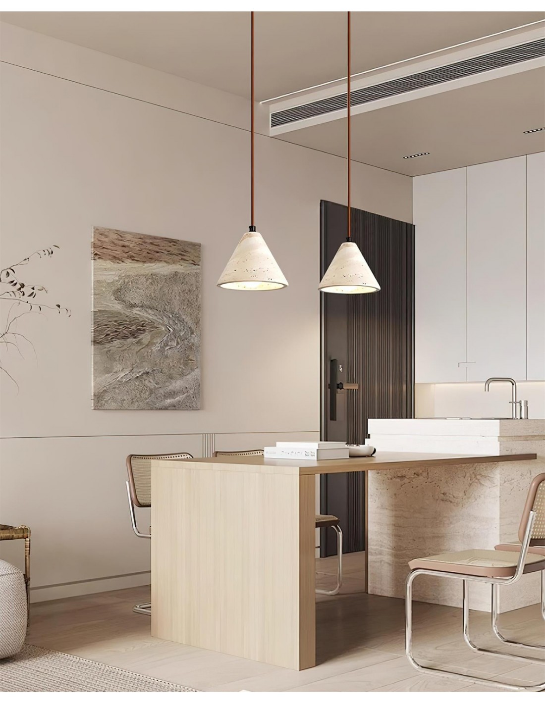 Werten Sie Ihren Raum mit der Hängelampe auf, einer perfekten Mischung aus Minimalismus und natürlicher Eleganz. Diese konische Hängelampe aus strukturiertem Stein strahlt eine raue und doch raffinierte Ästhetik aus. Die schlanke, moderne Silhouette kontrastiert wunderbar mit der organischen Struktur des Steins und schafft einen markanten Blickfang in jedem Raum.