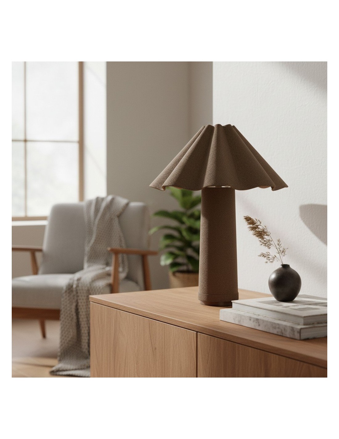 Diese skulpturale Tischleuchte mit ihrem strukturierten Stoffbezug und der eleganten Silhouette vereint Funktion und Kunst. Sie spendet ein warmes, einladendes Licht und eignet sich ideal für Beistelltische, Nachttische oder Schreibtische. Ihre klaren Linien und das raffinierte Design passen perfekt zu modernen, klassischen oder minimalistischen Einrichtungen und verleihen jedem Raum Stil und behagliche Beleuchtung.