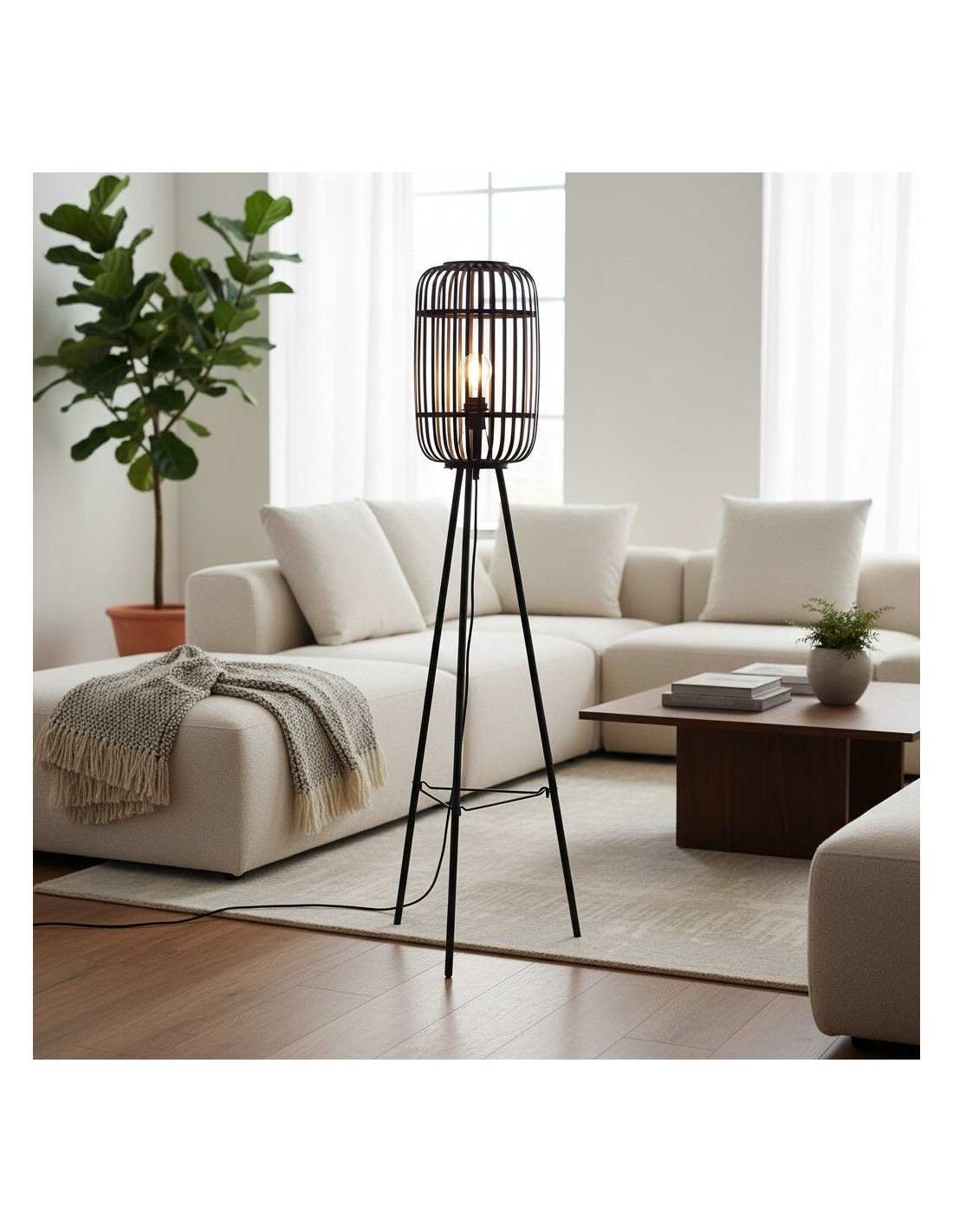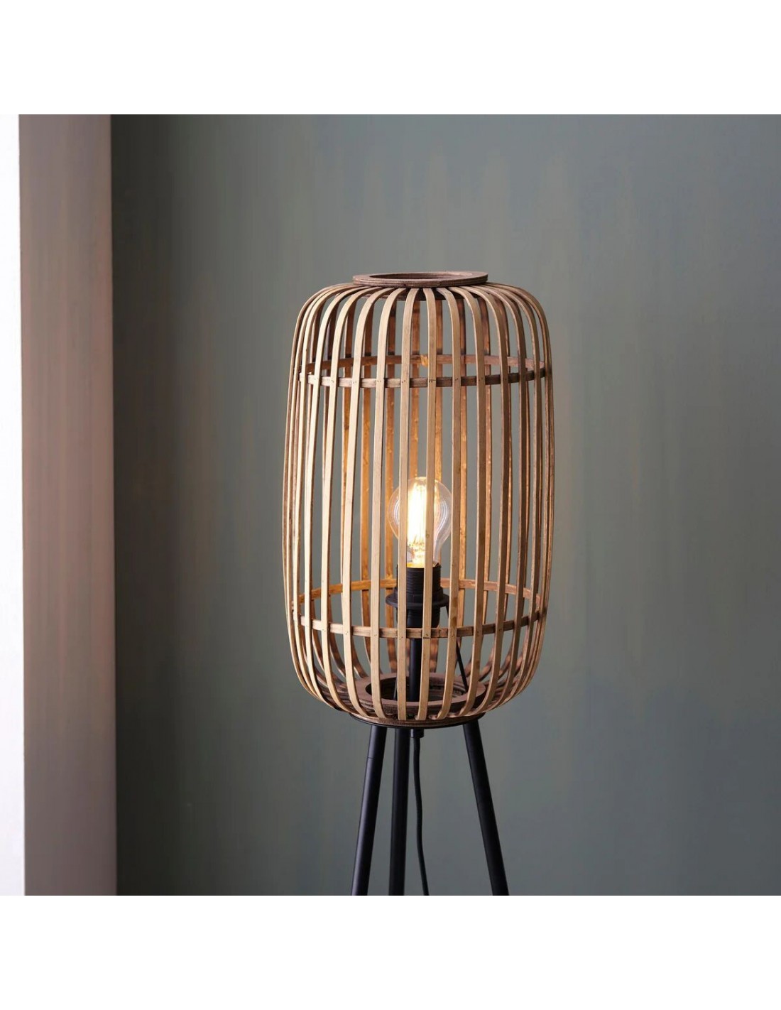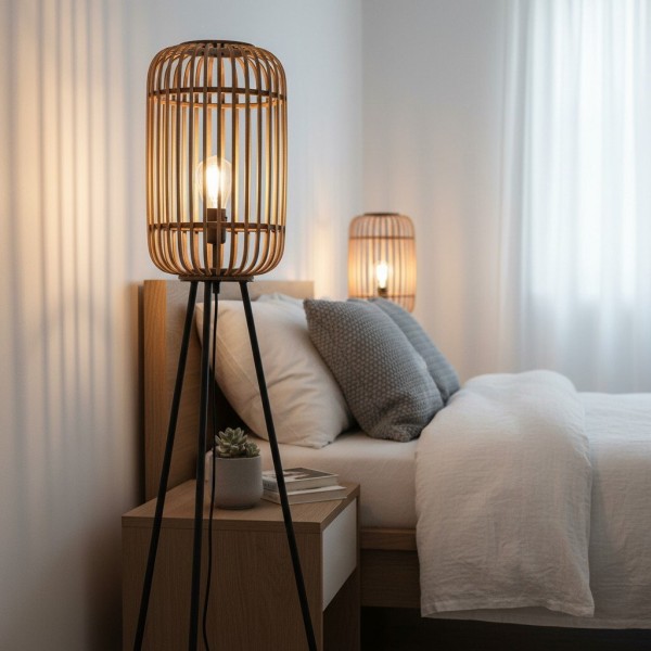 Die Stehleuchte Yumeko kombiniert ein schlankes Gestell mit einem strukturierten Lampenschirm aus gewebtem Bambus und erzeugt so ein warmes, stimmungsvolles Licht. Diese einflammige Stehleuchte schafft eine behagliche Atmosphäre und eignet sich ideal für Wohnzimmer, Schlafzimmer, Leseecken oder Homeoffices. Sie passt perfekt zu modernen, skandinavischen oder Boho-Einrichtungen.