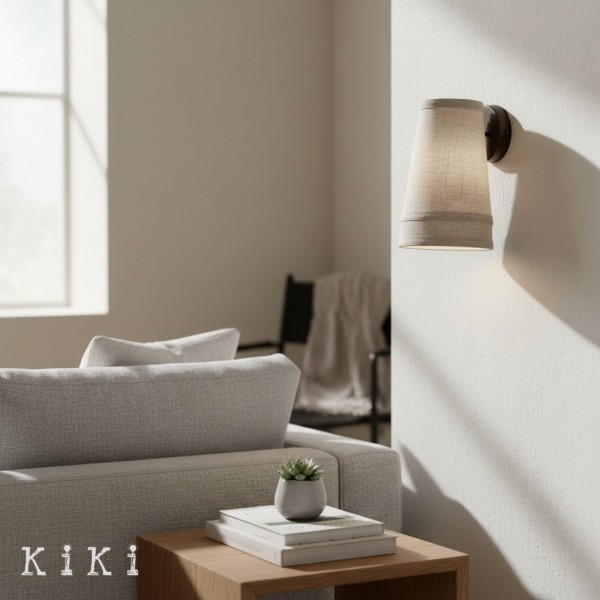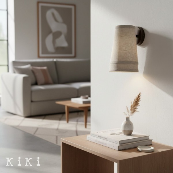 Die Wandleuchte Zalen bietet eine raffinierte Beleuchtung, die einen weichen, mehrlagigen Leinenschirm mit einer eleganten, bronzefarbenen Metallstruktur verbindet. Sie spendet sanftes, natürliches Licht und passt perfekt zu modernen wie klassischen Interieurs.