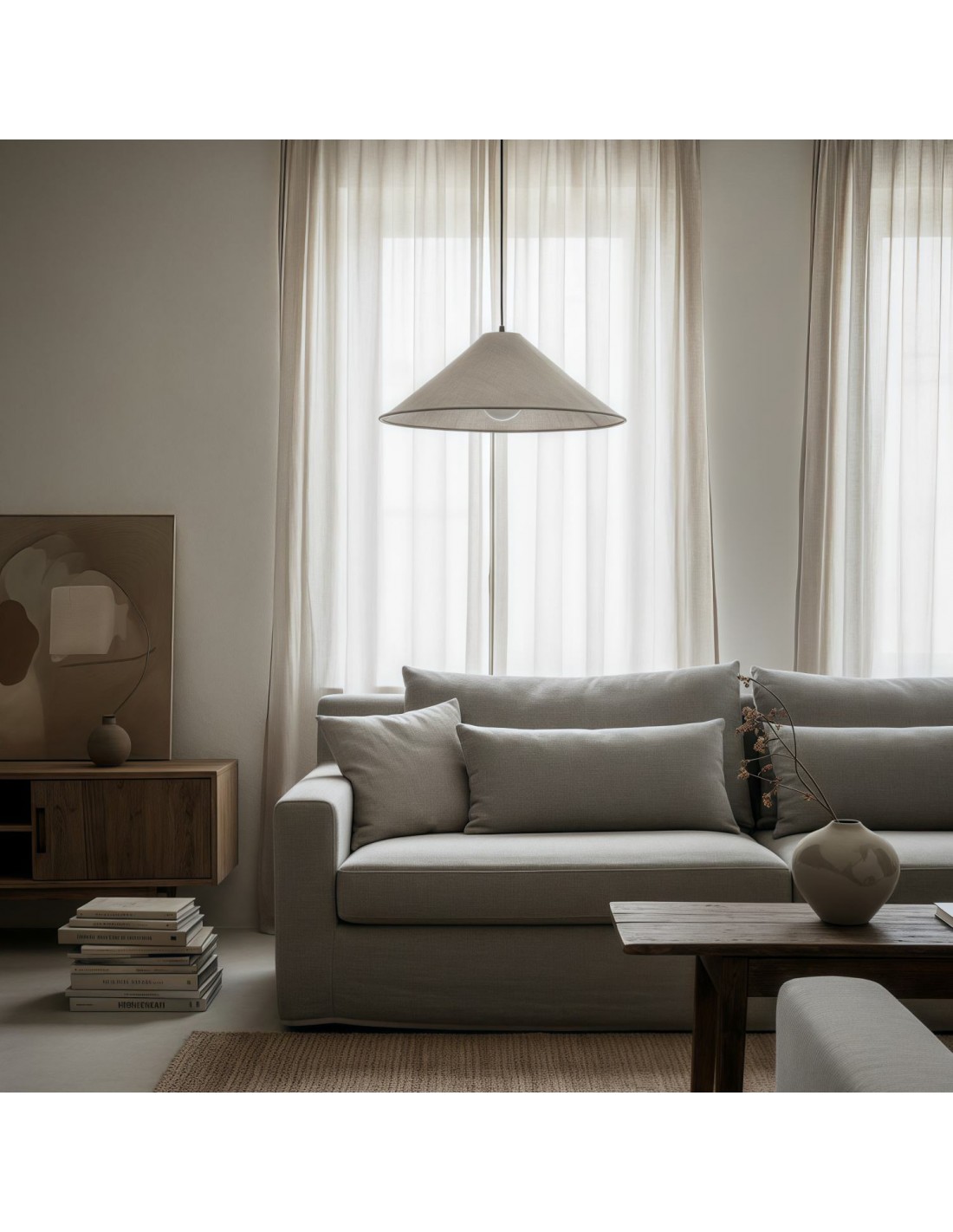 Dieser Leinenrollo, erhältlich in zwei Größen, besticht durch seine sanft plissierte Form, die ihm eine natürliche Textur verleiht. Gefertigt aus atmungsaktivem Leinen, spendet er warmes Licht und schafft so eine ruhige, einladende Atmosphäre. Sein vielseitiges Design passt perfekt in Wohnzimmer, Schlafzimmer, Essbereiche oder Leseecken.