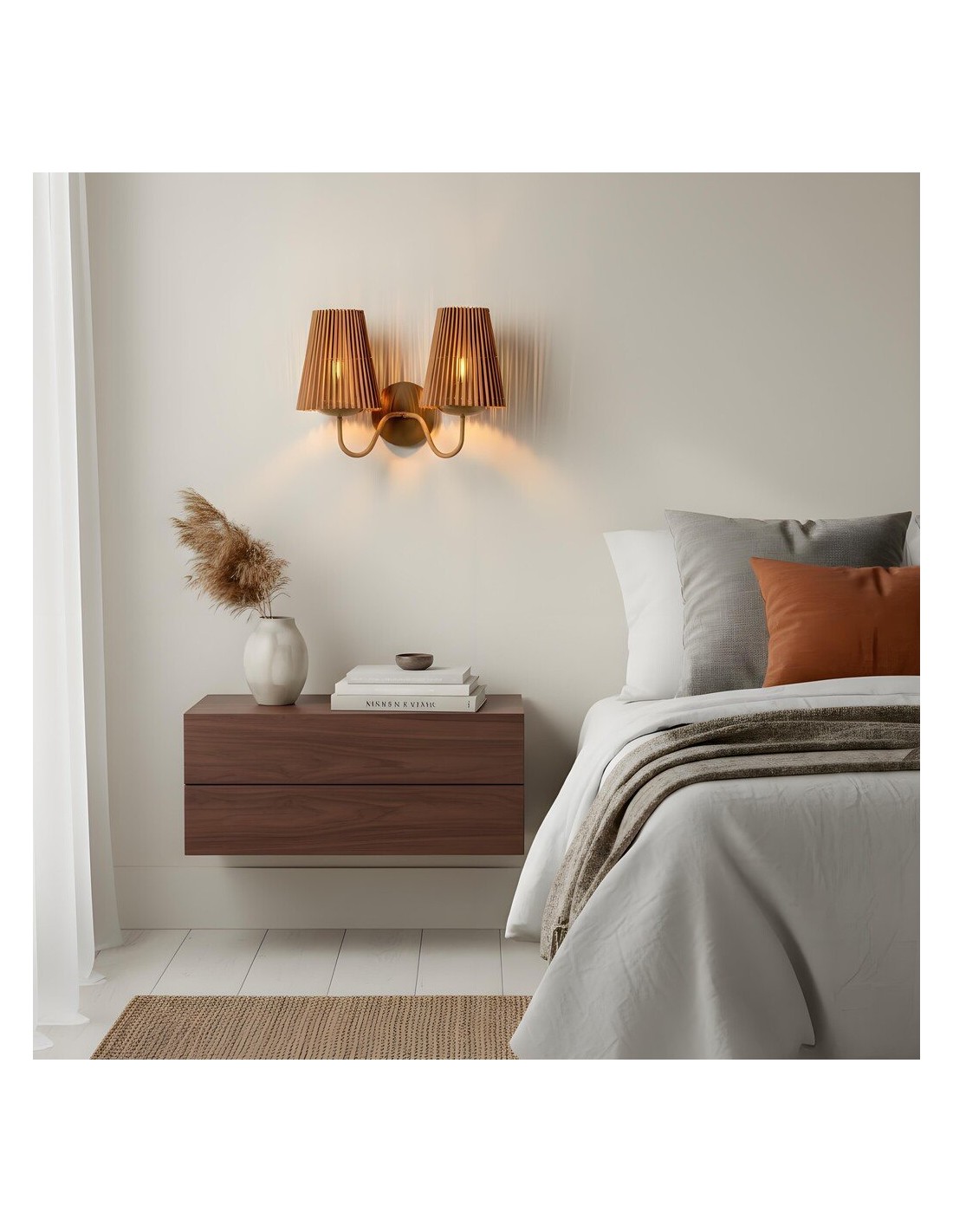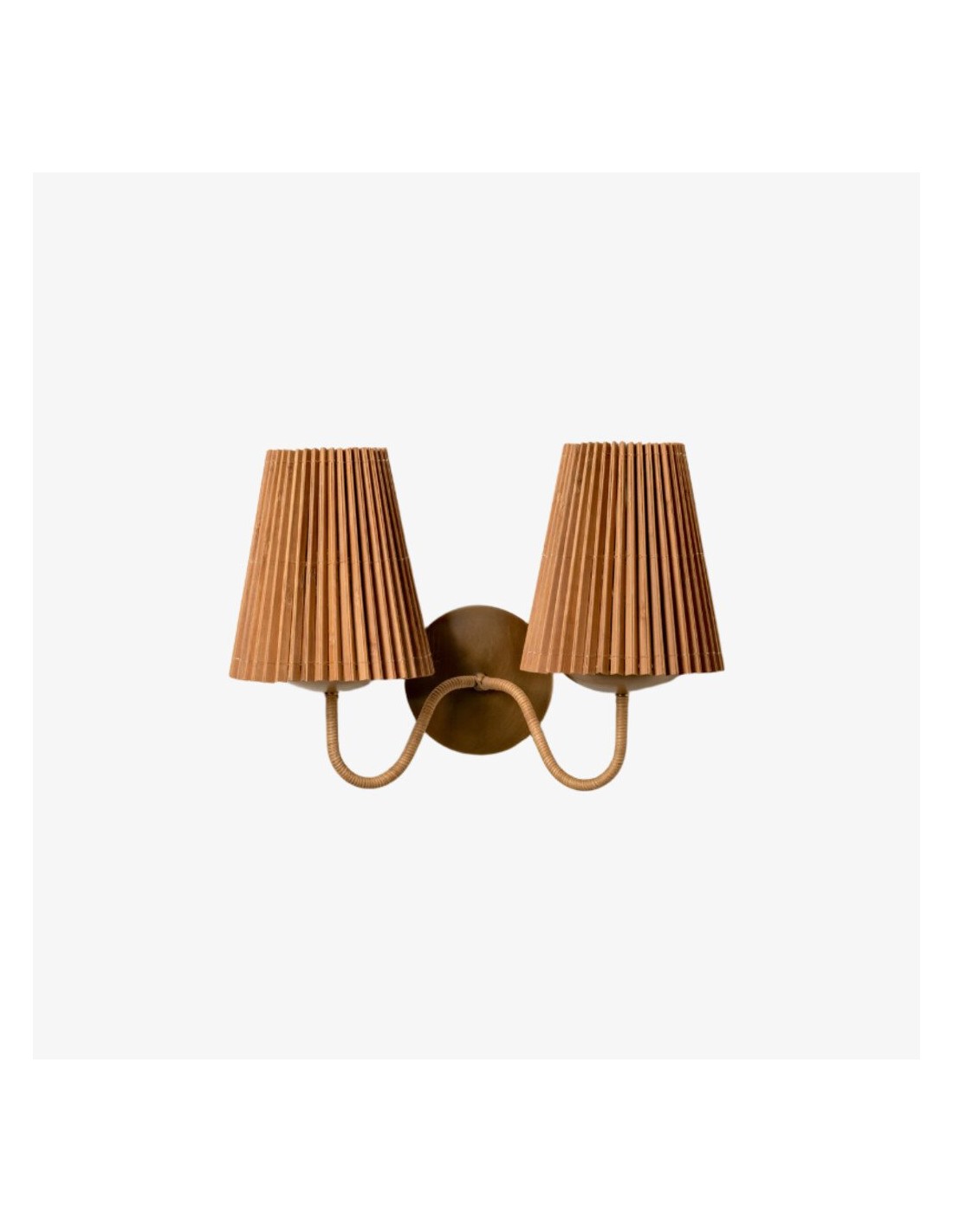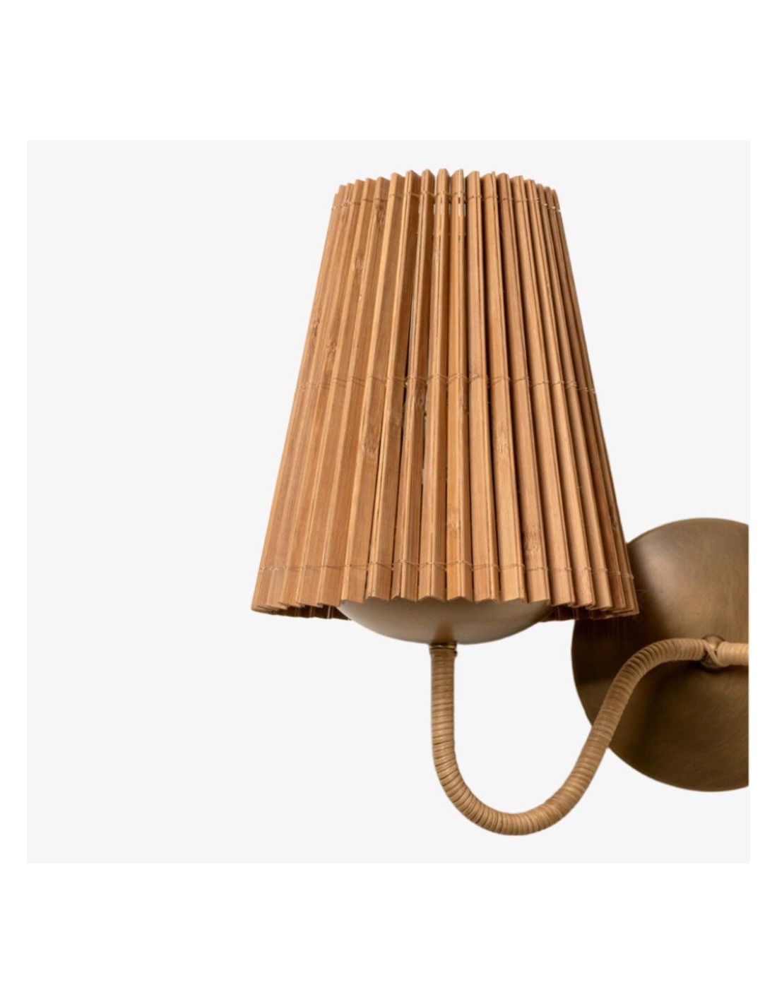 Die Wandleuchte Zhoove besticht durch ihr natürliches Bambus-Design. Diese exquisit gefertigte Leuchte verfügt über einen eleganten Messingfuß zur Wandmontage und fügt sich mit ihrer klaren Silhouette perfekt in moderne und Vintage-Einrichtungen ein. Der plissierte Bambus-Lampenschirm wirkt zart, während die geschwungenen Bambusarme für eine harmonische Linienführung sorgen. Ob als stimmungsvolle Beleuchtung im Wohnzimmer oder als dekoratives Element an den Schlafzimmerwänden – sie erfüllt ihre Funktion einwandfrei.