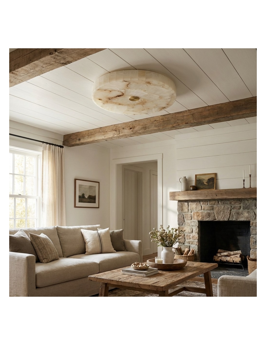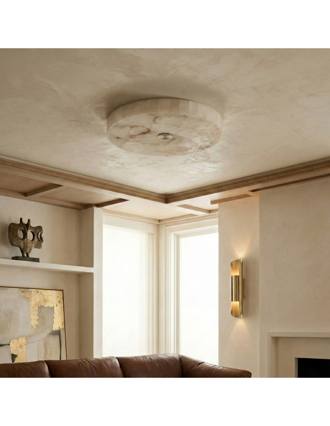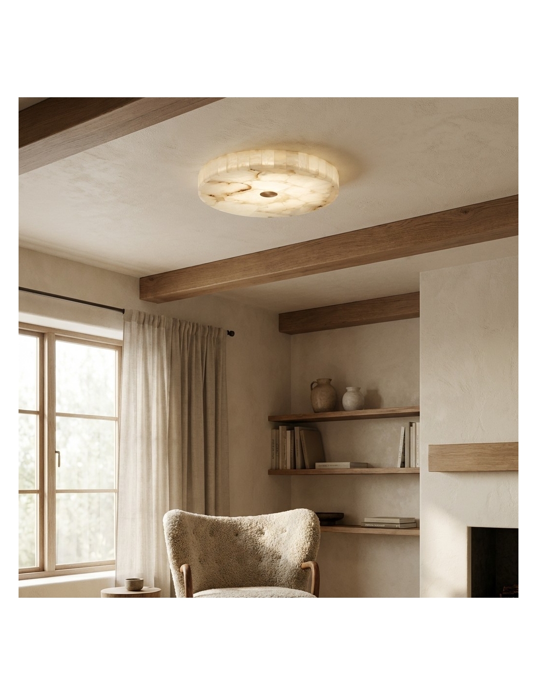 The AlbaSphere Alabaster Round Alabaster Ceiling Lamp is a refined flush mount lighting fixture designed for modern interiors. Ideal for living rooms, bedrooms, dining areas, hallways, and apartments, this ceiling light balances decorative appeal with functional performance.