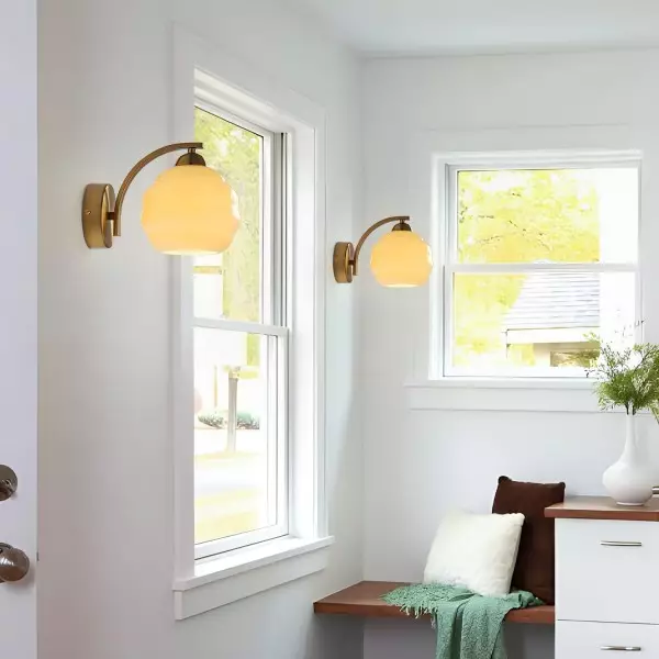 The Antique Milk Glass Gold Bathroom Wall Sconce adds a touch of vintage glamour to your bathroom or other space. Art deco wall light with creamy milk or white glass shades diffuse a soft, warm light, creating a cozy ambiance that invites relaxation. Cream design wall light perfect for luxurious powder rooms, vintage-inspired bathrooms, or any space seeking a touch of timeless elegance. This vintage glass wall light exudes an air of sophistication, enhancing the overall aesthetic of your sanctuary with its golden accents and timeless charm.