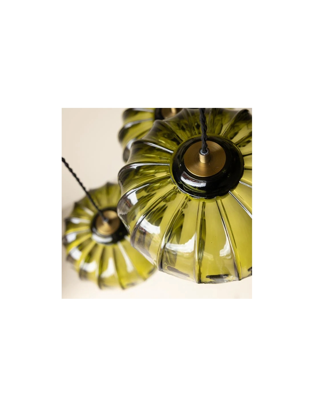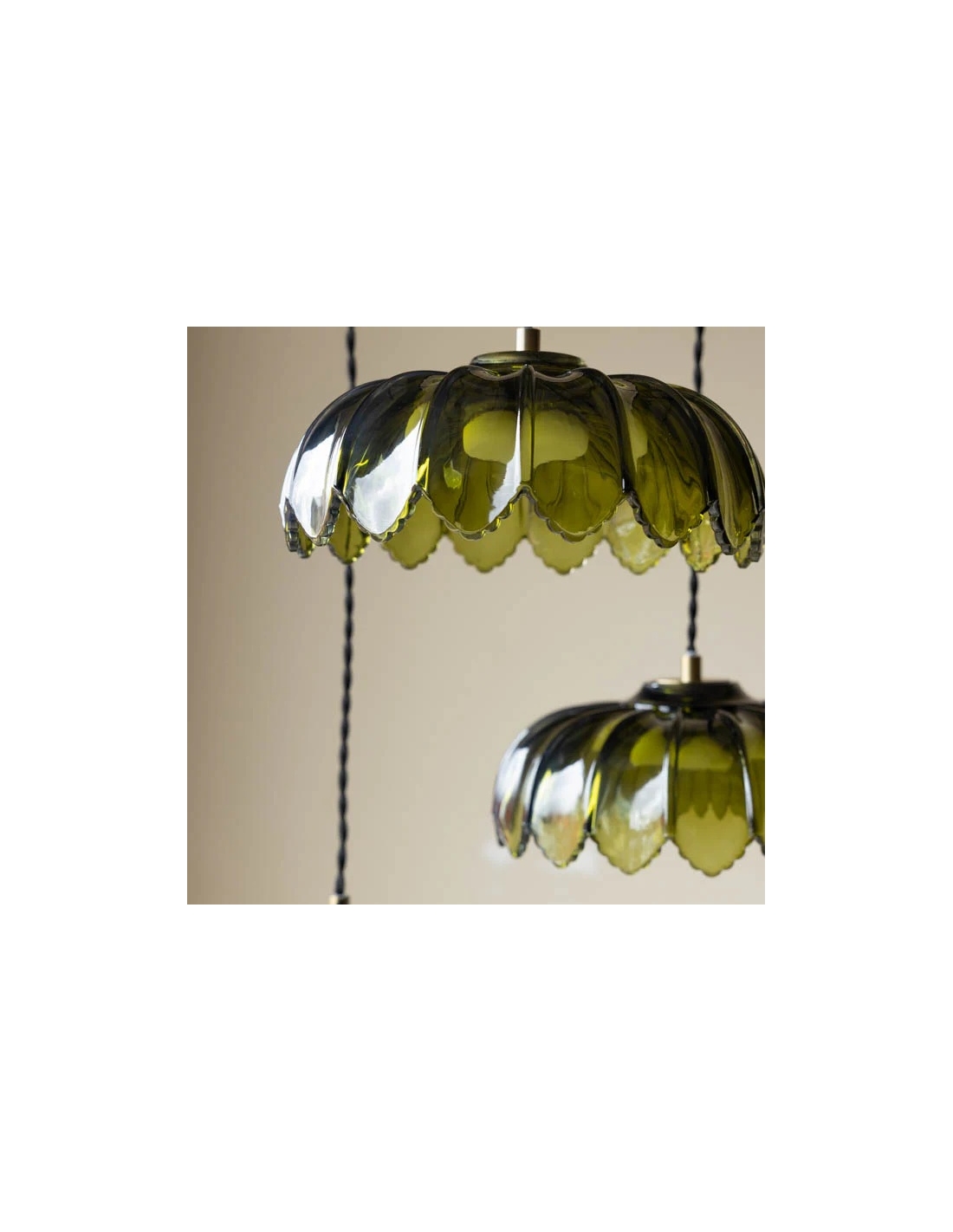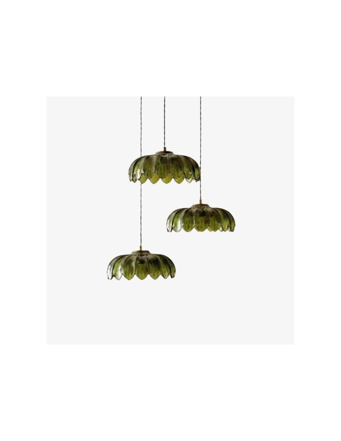A striking cluster ceiling light featuring sculptural glass shades inspired by palm leaf silhouettes, creating a visual focal point in any space. Three adjustable pendants hang from a single canopy, offering customizable heights for tailored placement. The artistic glass construction diffuses warm light, perfect for living rooms, dining areas, or kitchens.