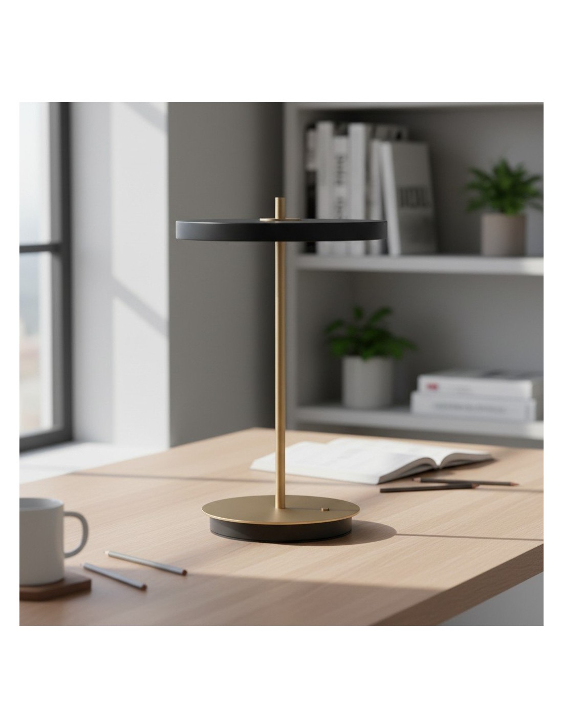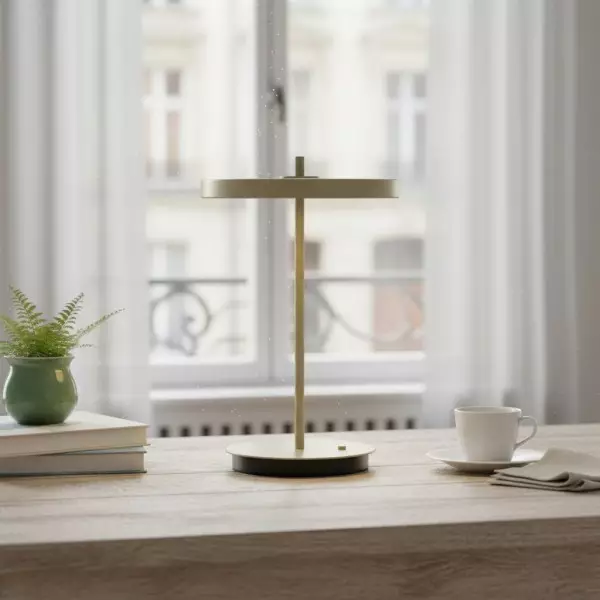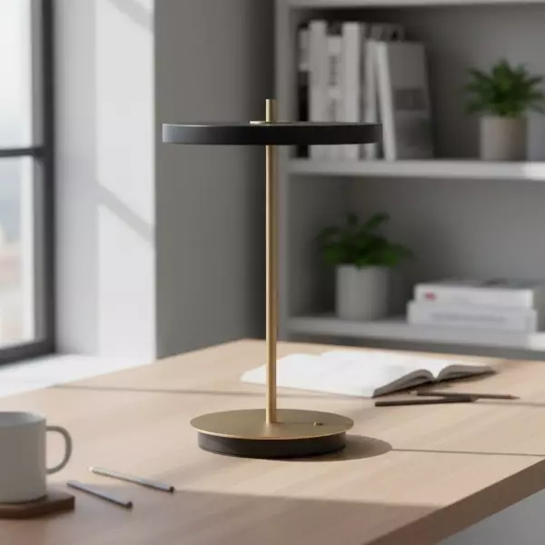 The Astris table lamp combines modern minimalism with functional design, featuring a sleek metal base and a soft acrylic glass diffuser. Its sculptural silhouette makes it a stylish addition to any living room, bedroom, or office desk.