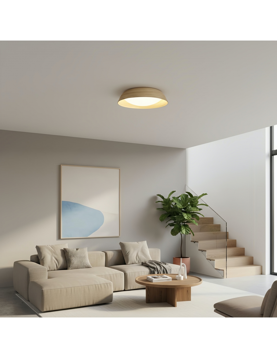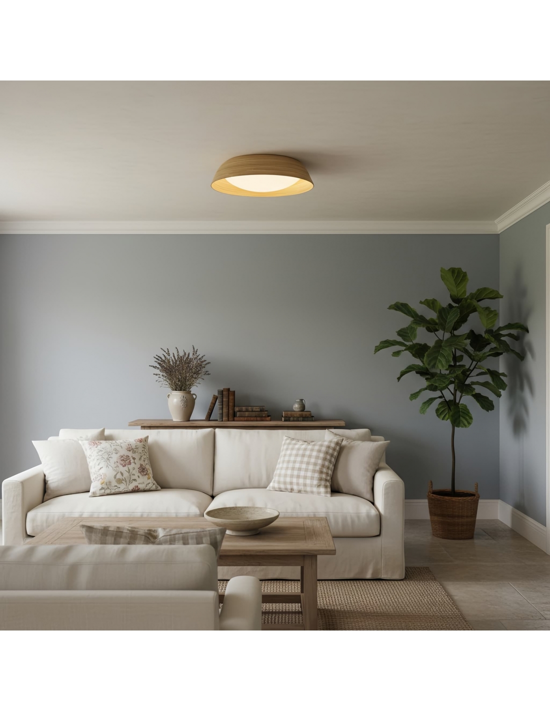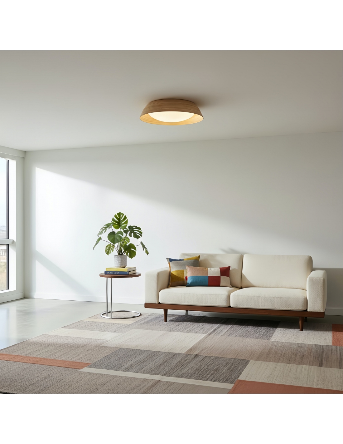 Embrace minimalist elegance with this Japandi style ceiling lamp. Celebrating simplicity and natural beauty, it serves as a serene focal point. Perfect over a dining table, kitchen island, or in a living room or bedroom, it creates a tranquil atmosphere with its warm, gentle glow.