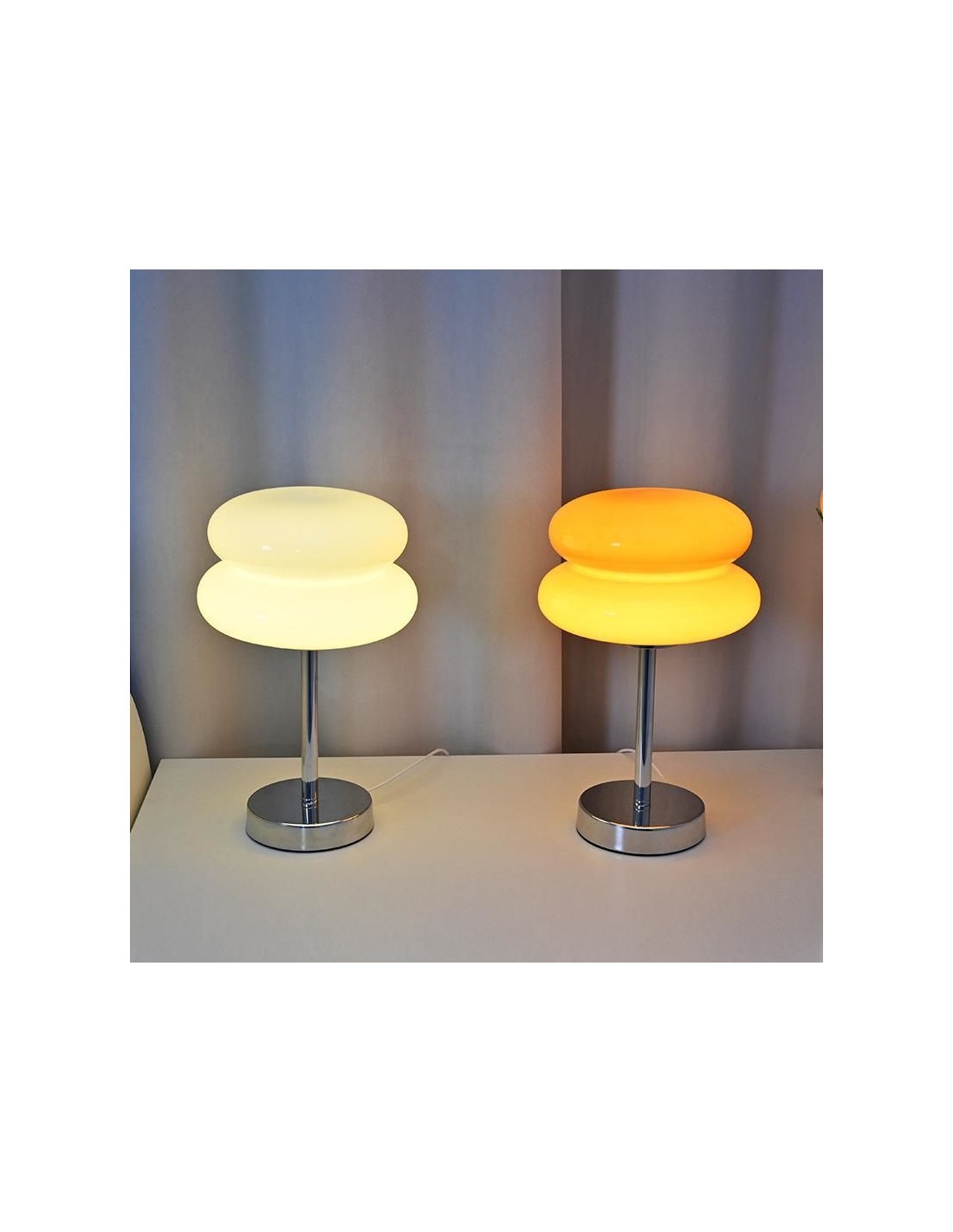 The Bauhaus Wire Switch Stained Glass Table Lamp stands out with its distinctive design, bringing a sense of simplicity and charm to any environment. Crafted with premium materials, a stylish base, and a contemporary glass shade, it serves as a delightful addition to any contemporary home. When illuminated, the Bauhaus Glass Table Lamp casts a warm ambient light, creating a cozy atmosphere. Available in five colors - Orange, Pink, Red, White, and Beige. The Bauhaus Stained Glass Bedside Lamp is versatile and achieves a clean, minimalist aesthetic in modern interior spaces.