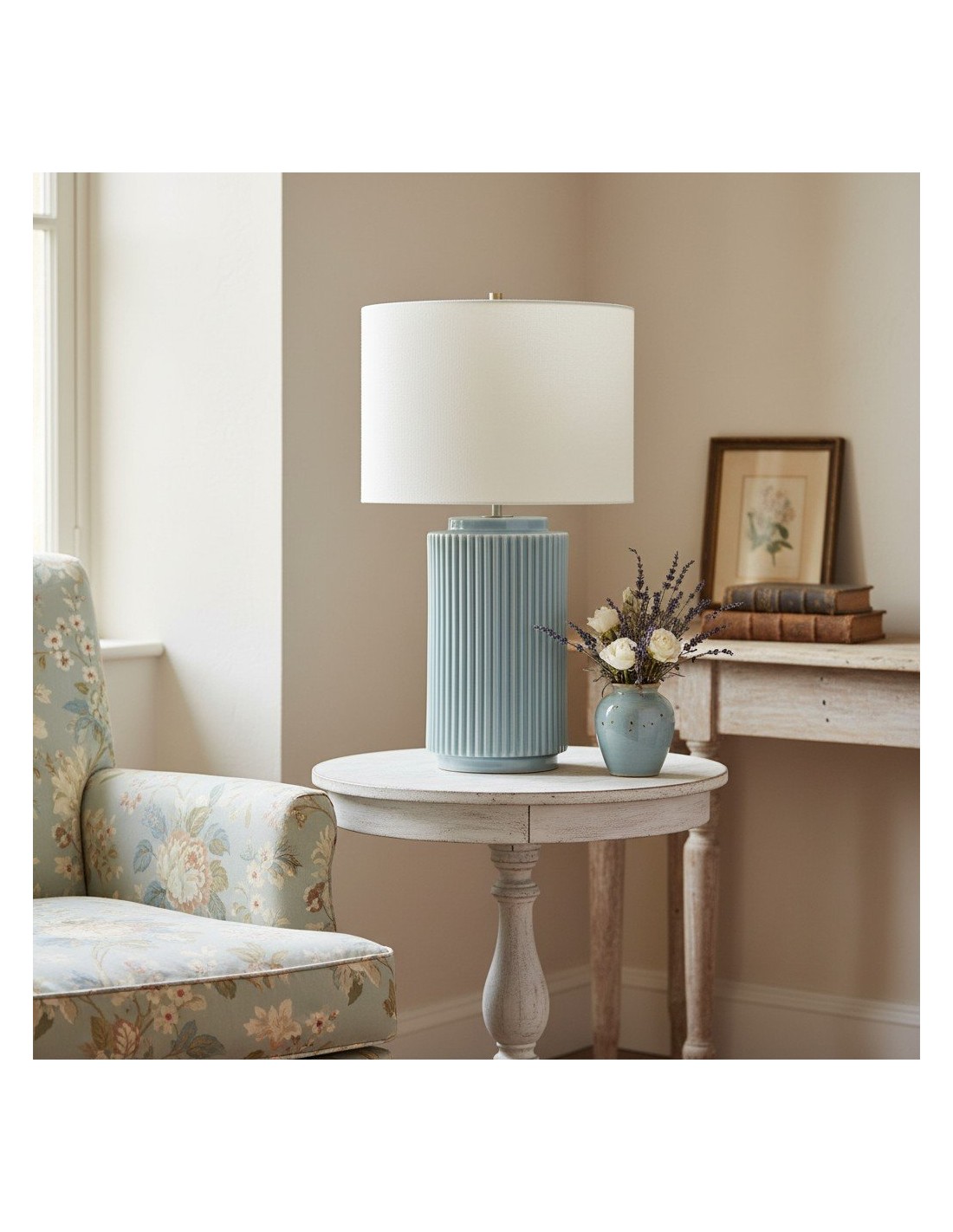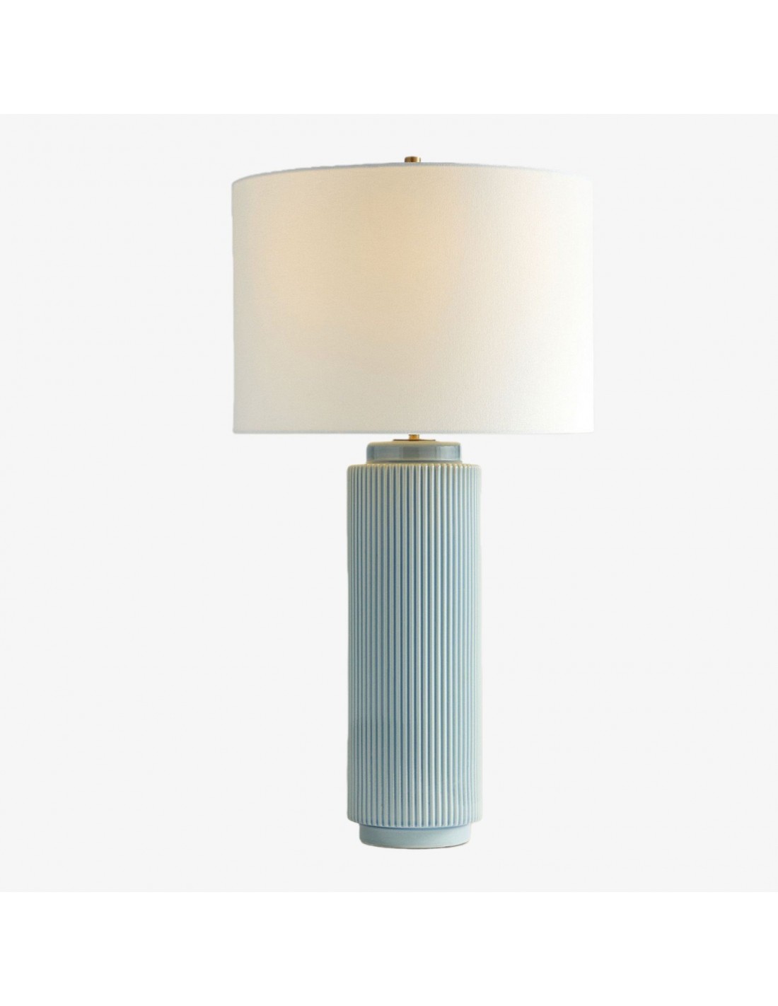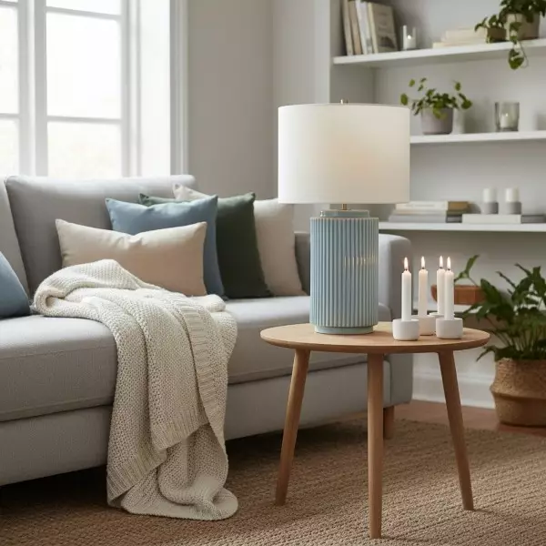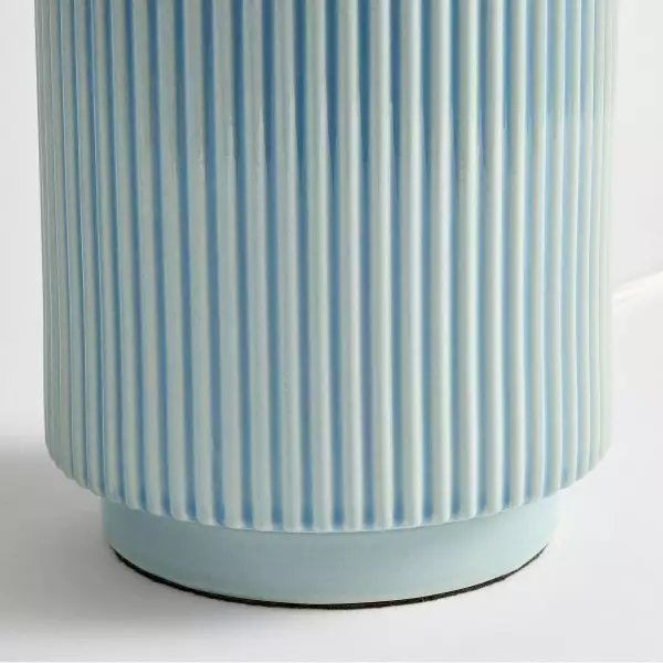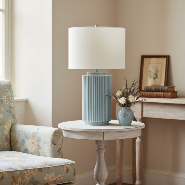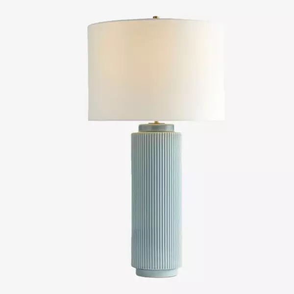 The soft linen shade complements the sleek ceramic base, providing a warm, diffused light that adds a cozy ambiance to your surroundings. Whether placed on a side table, console, or desk, the Ceruna Table Lamp delivers versatile illumination and enhances your space with its minimalist beauty.