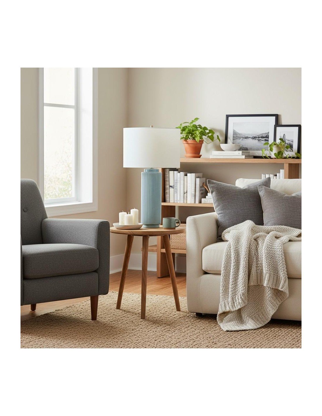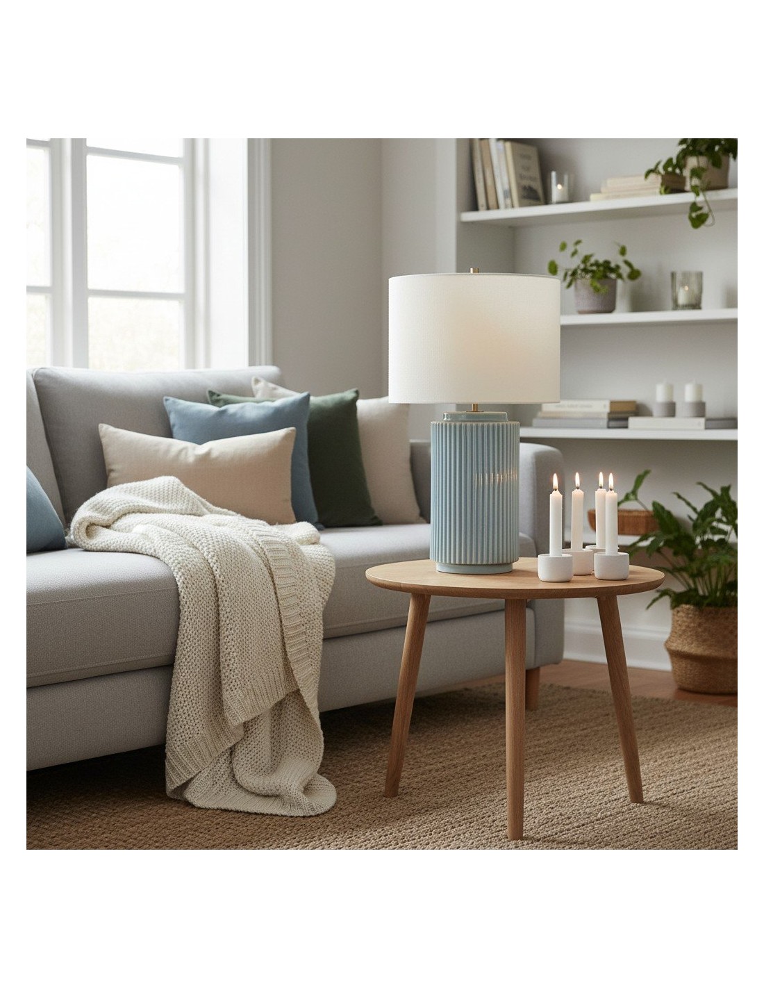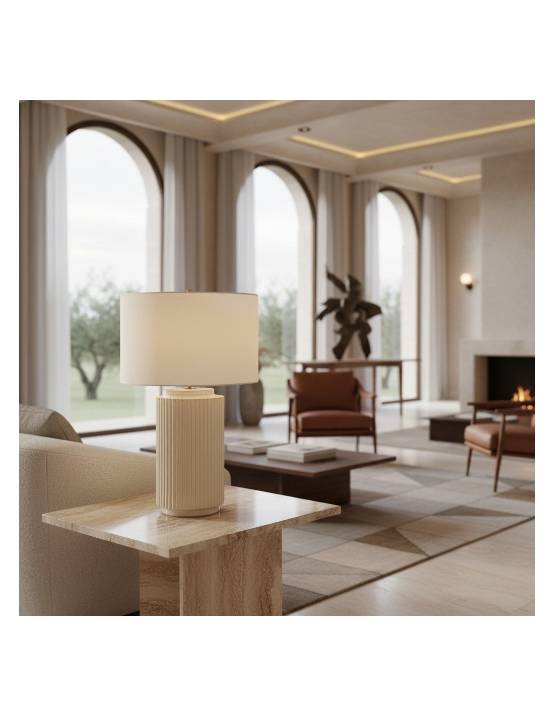 The soft linen shade complements the sleek ceramic base, providing a warm, diffused light that adds a cozy ambiance to your surroundings. Whether placed on a side table, console, or desk, the Ceruna Table Lamp delivers versatile illumination and enhances your space with its minimalist beauty.