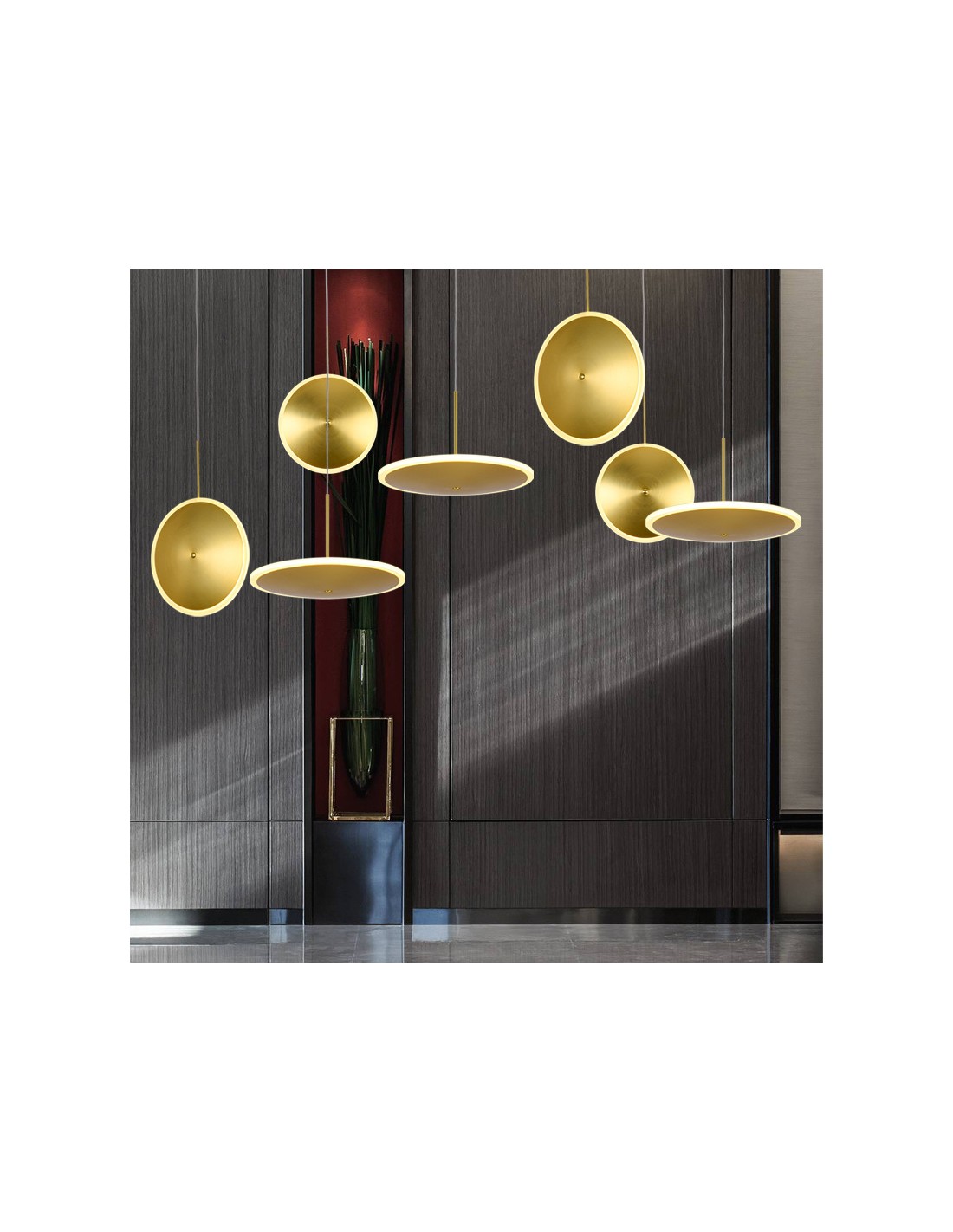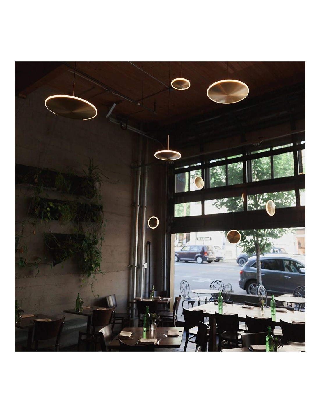 Mimicking the phosphorescent envelope found around stars, Chrona lights create a luminous glow by combining spun brass and diffused acrylic. With a variety of configurations in both horizontal and vertical orientations, Dish pendants can be clustered together to make stunning constellations or individually hung to accentuate any space.