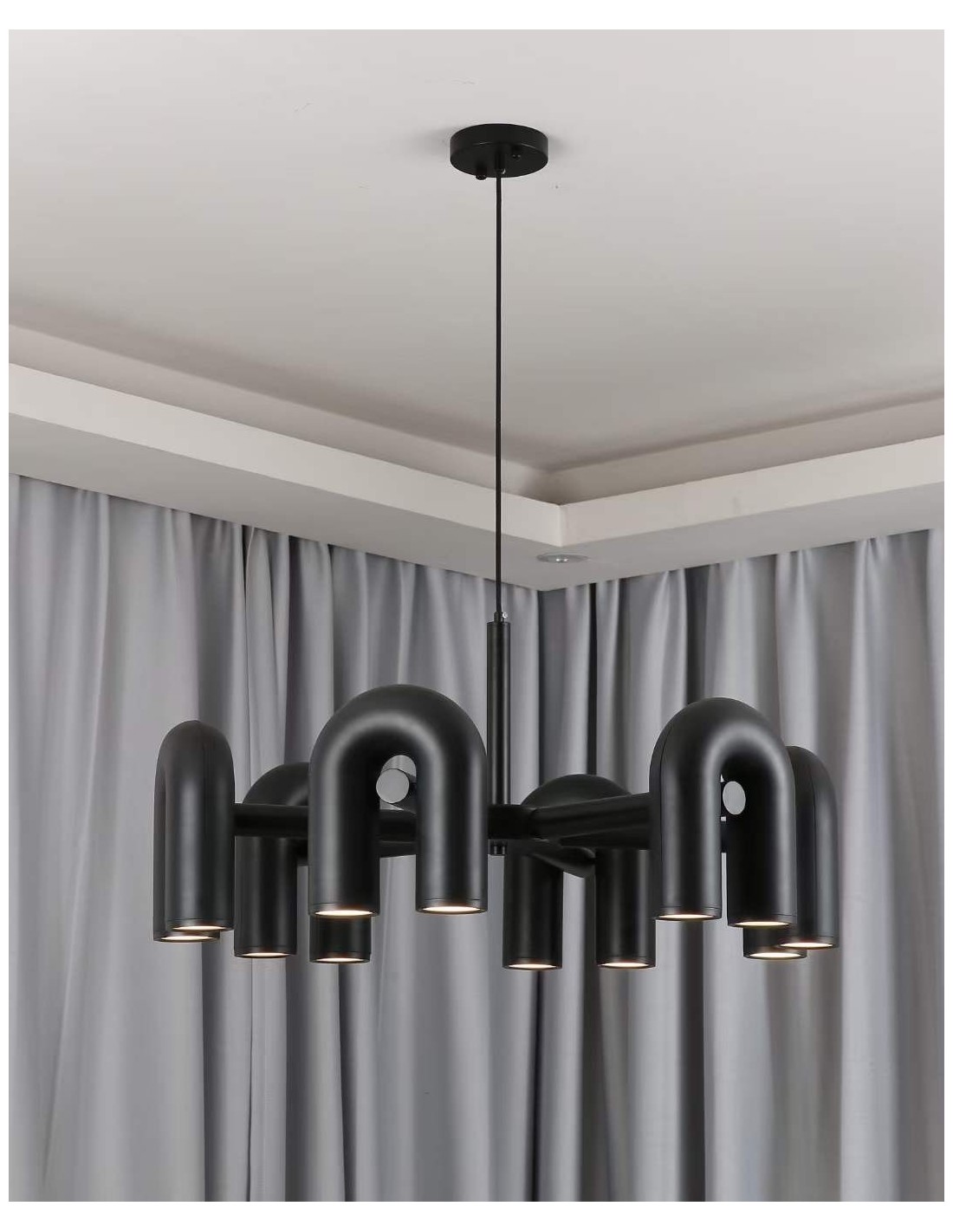 CIRKUS approached function and technology with a playful gesture. U-shape modules can be moved and directed in diverse orientations. CIRKUS collection comes with a wall lamp, a track rail lamp, and two types of chandeliers to become a playful customized centerpiece in diverse spaces. CIRKUS CHANDELIER is loved by its special appearance design. The light it emits is warm and comfortable. It is an ideal choice for the living room. You can choose the product that suits you according to your needs.