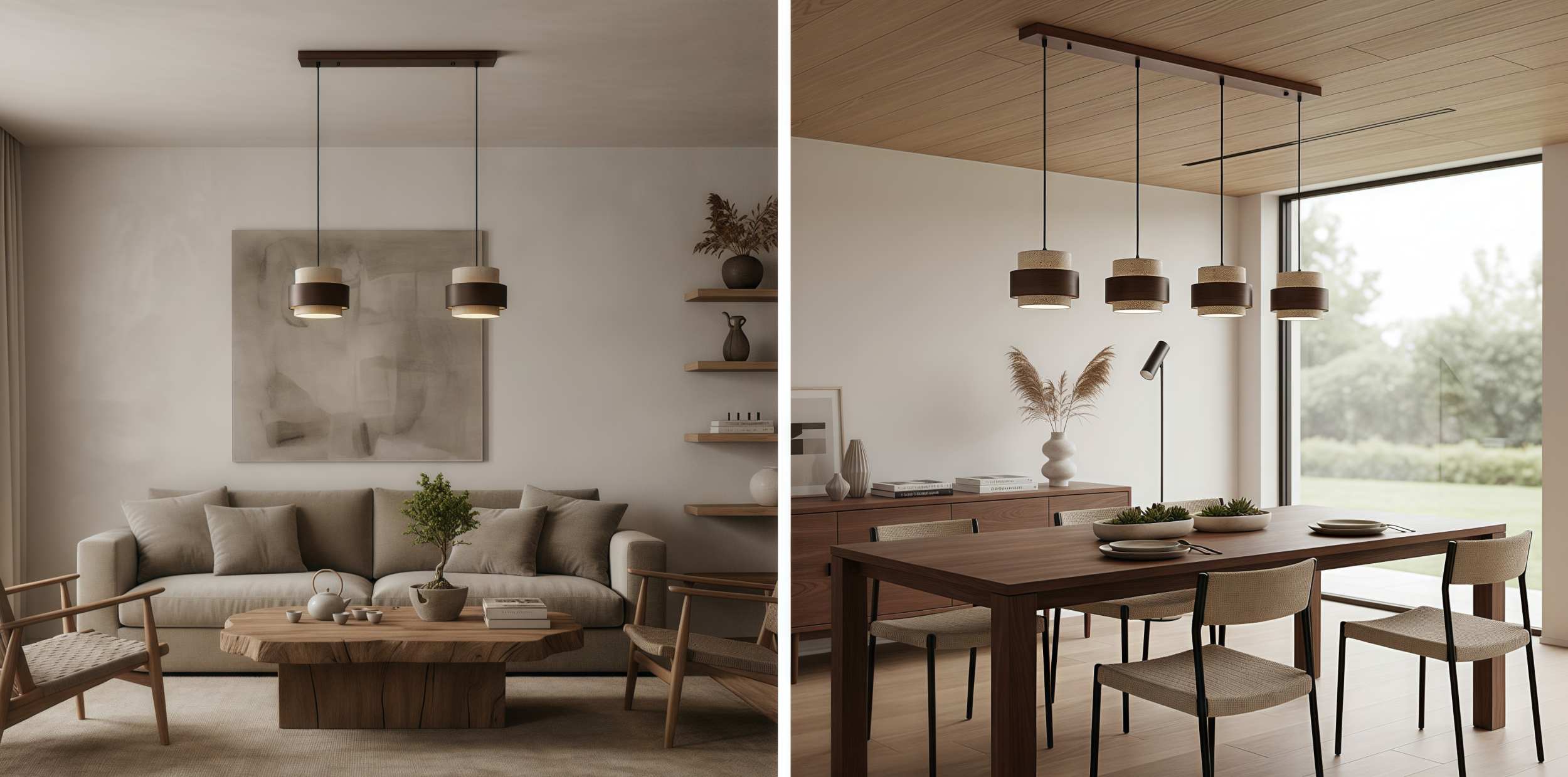 This multi-head pendant lamp combines natural elegance with modern structure. Clean linear suspension supports sculptural shades, creating a balanced visual rhythm and warm ambient light. Designed for dining tables, kitchen islands, or open living areas, it delivers refined style with practical everyday illumination.