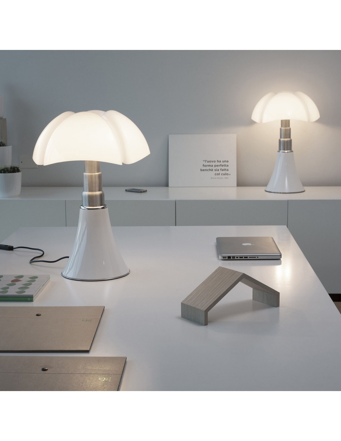 Crafted in three enticing hues of black, white, and red, this aerodynamic masterpiece adds a touch of modern elegance to sideboards, injecting intrigue and illumination into dining soirees. Transforming nighttime rituals, pipistrello lamp doubles as a bedside lamp, casting a subtle, intimate glow for peaceful slumbers.