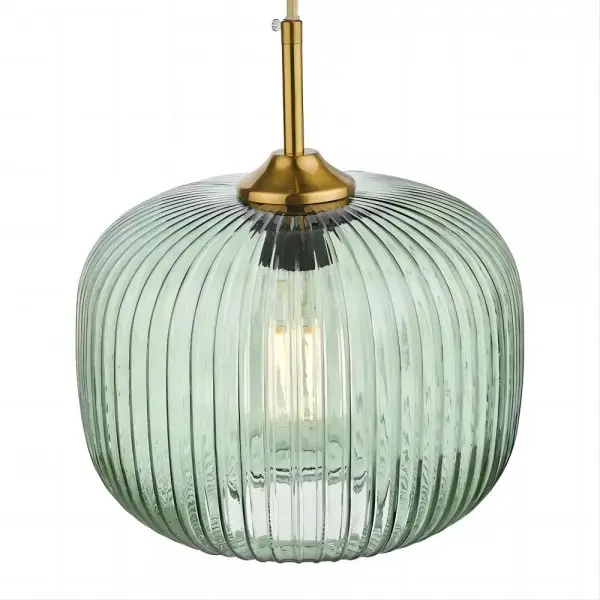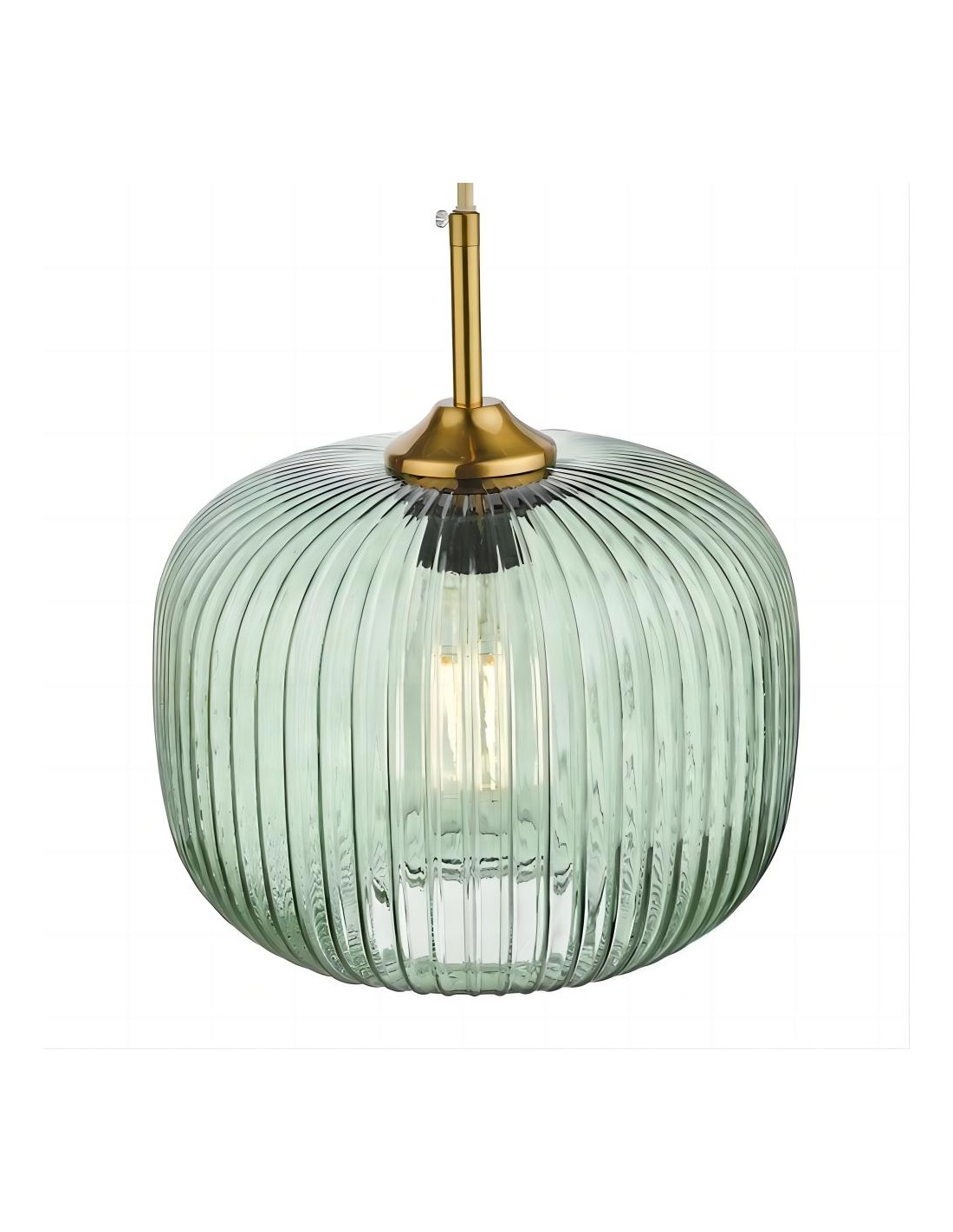 The Demarius 1 Light Ribbed Glass Pendant Lamp exudes elegance and sophistication with its modern minimalist design. Designed with a ribbed glass shade, it adds a touch of texture and visual interest to any space. Demarius Glass Pendant Lamp is available in four colors: Amber, Green, Smoked, Transparent. When lit, the light emits through the glass lampshade, reflecting a beautiful picture. Whether you want to create a cozy atmosphere in your living room or add a touch of style to your dining area, the Demarius Modern Minimalist Glass Pendant Lamp is the perfect choice.