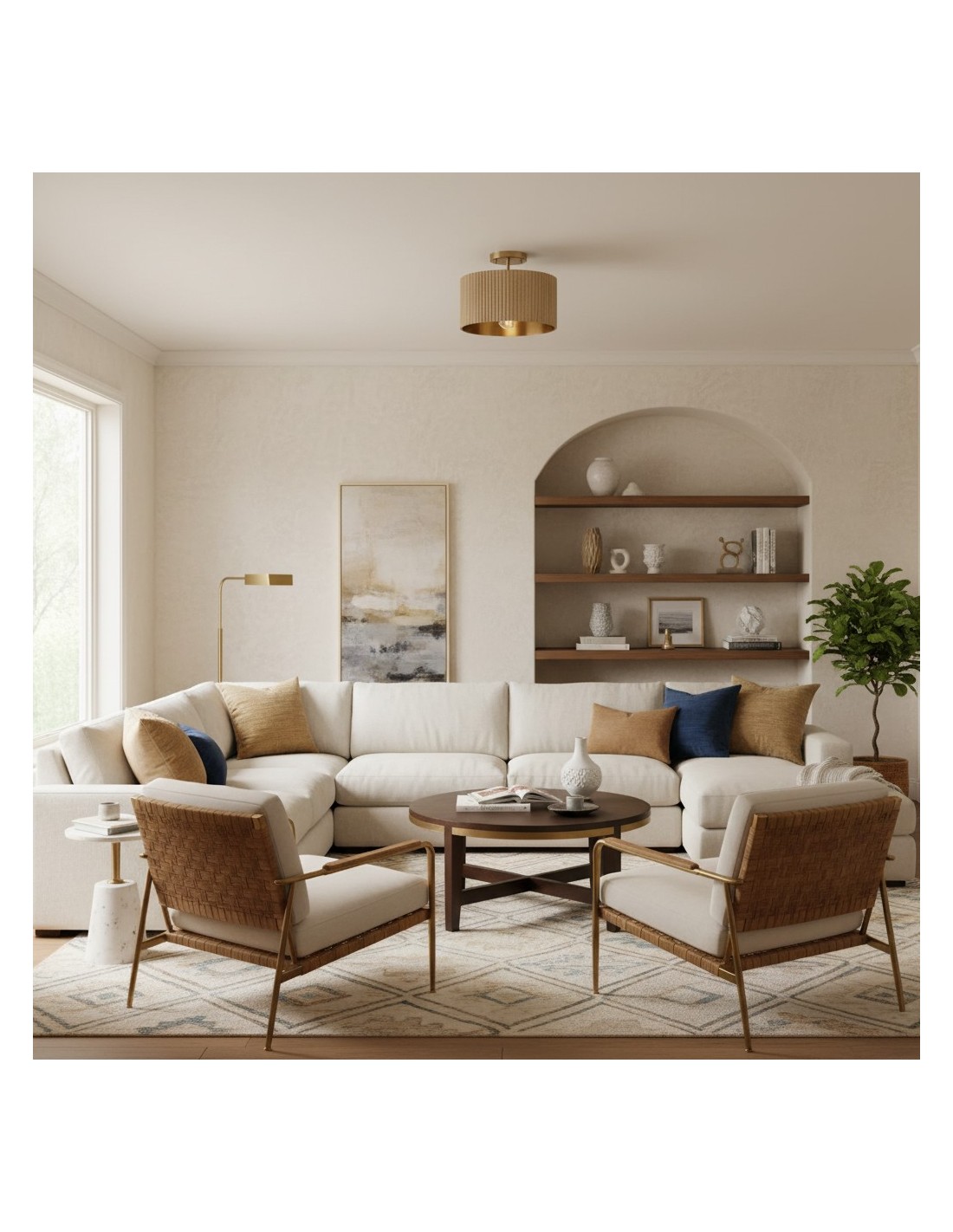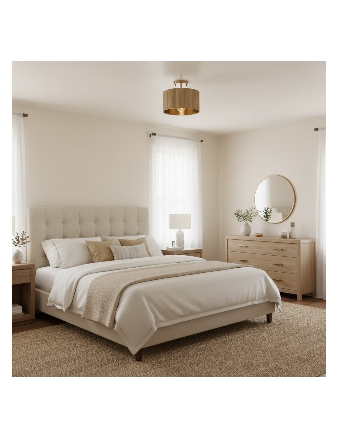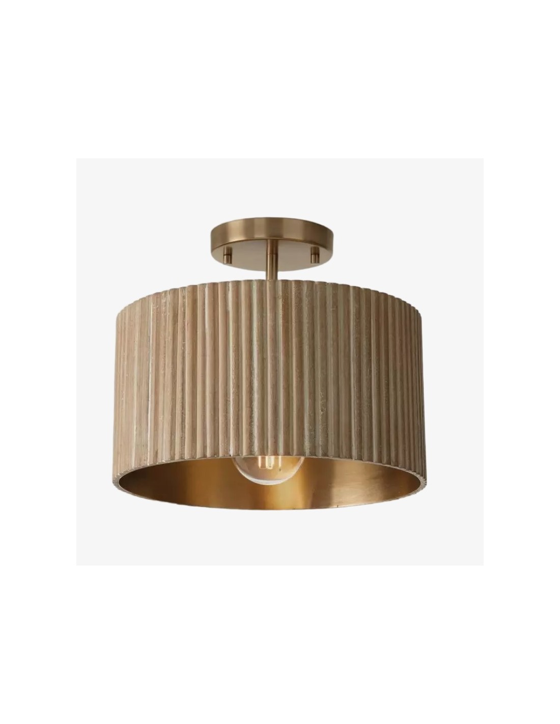 This fluted drum ceiling light features a sculptural, vertically textured shade that adds depth and visual interest to the ceiling. Inspired by farmhouse aesthetics with a modern touch, its drum silhouette creates a balanced, architectural presence.