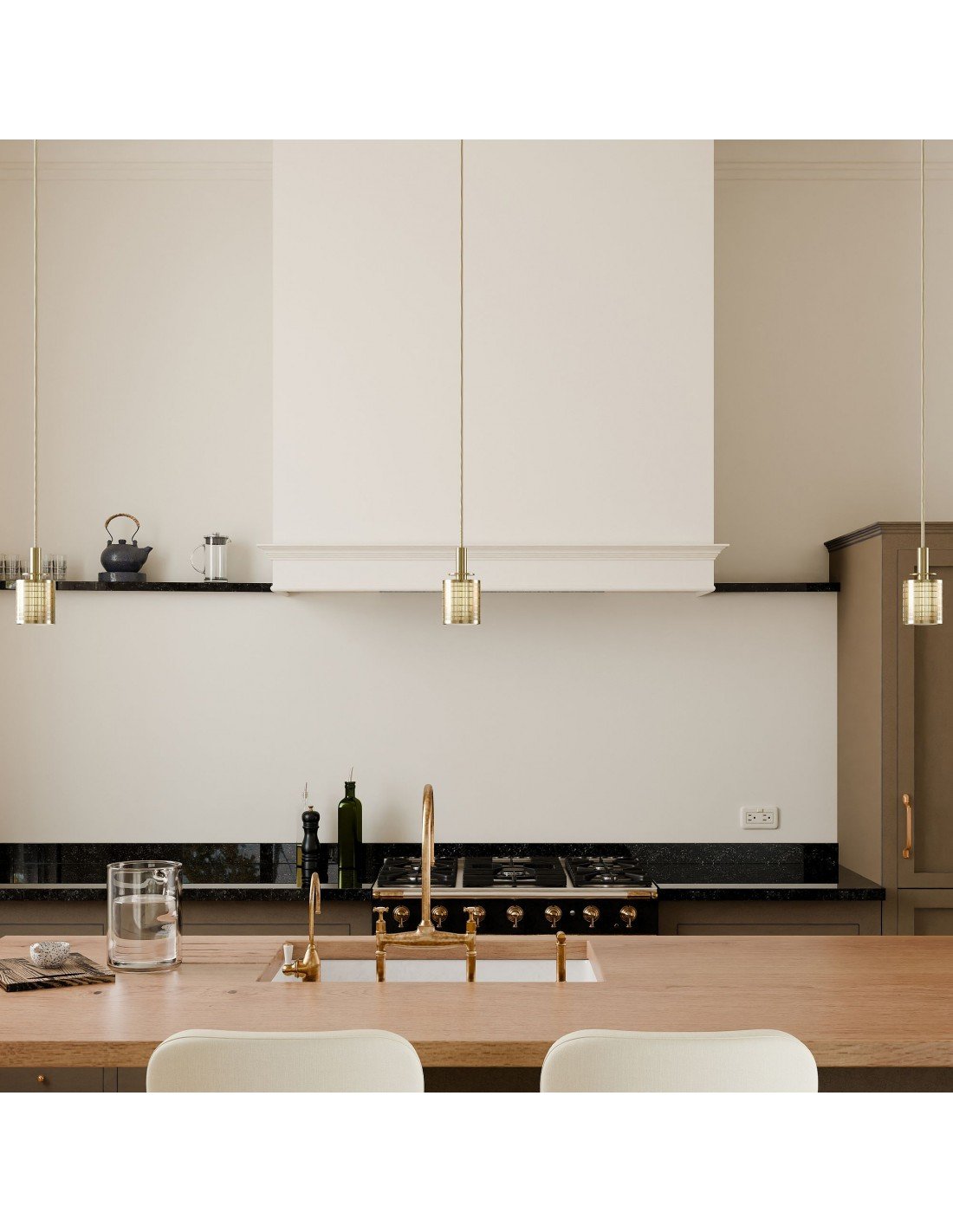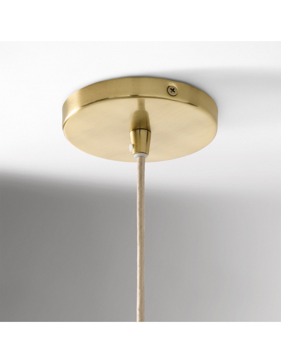 - Perforated metal shade in Champagne Bronze over glass diffuser in White.