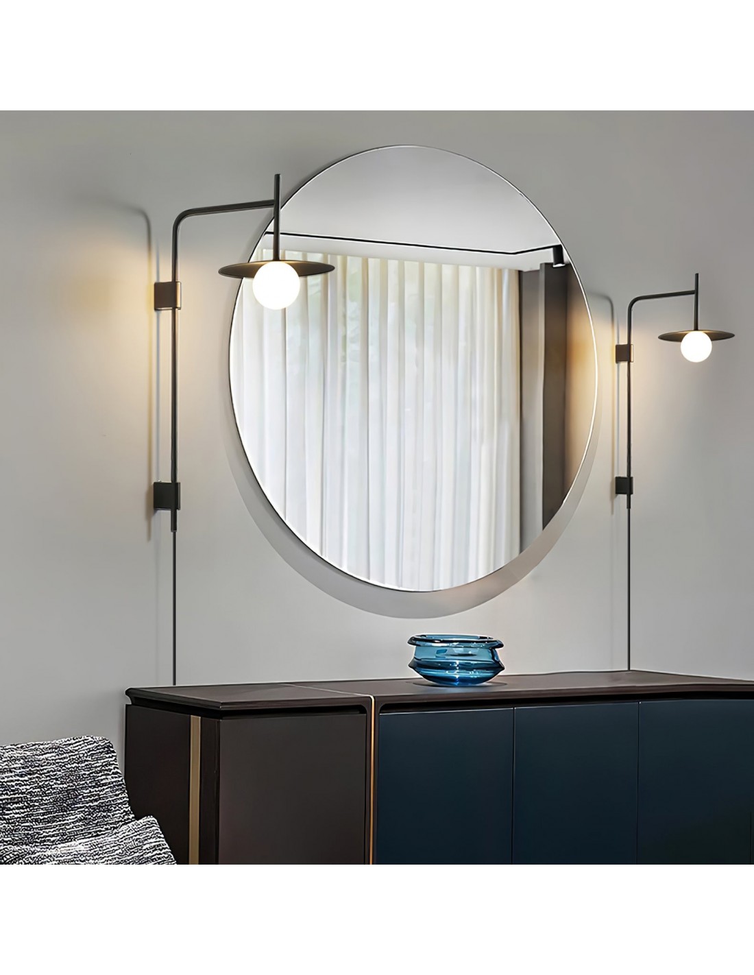 The lampshade, made of high-quality materials such as glass, diffuses the light beautifully, casting a gentle and soothing illumination. Whether used as ambient lighting or as a focal point in a specific area, the Gea Swing Arm Wall Lamp creates a captivating visual effect and enhances the overall ambiance of the room.