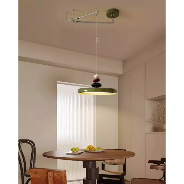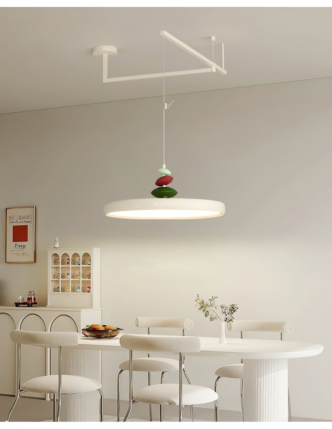The Simple Rocker Arm Flying Saucer Creative Chandelier blends contemporary elegance with playful sophistication, featuring a sleek, elliptical main light adorned with colorful Resin stones in vibrant hues. Its minimalist cable and adjustable suspension system make it ideal for a variety of spaces, from dining areas to workspaces.