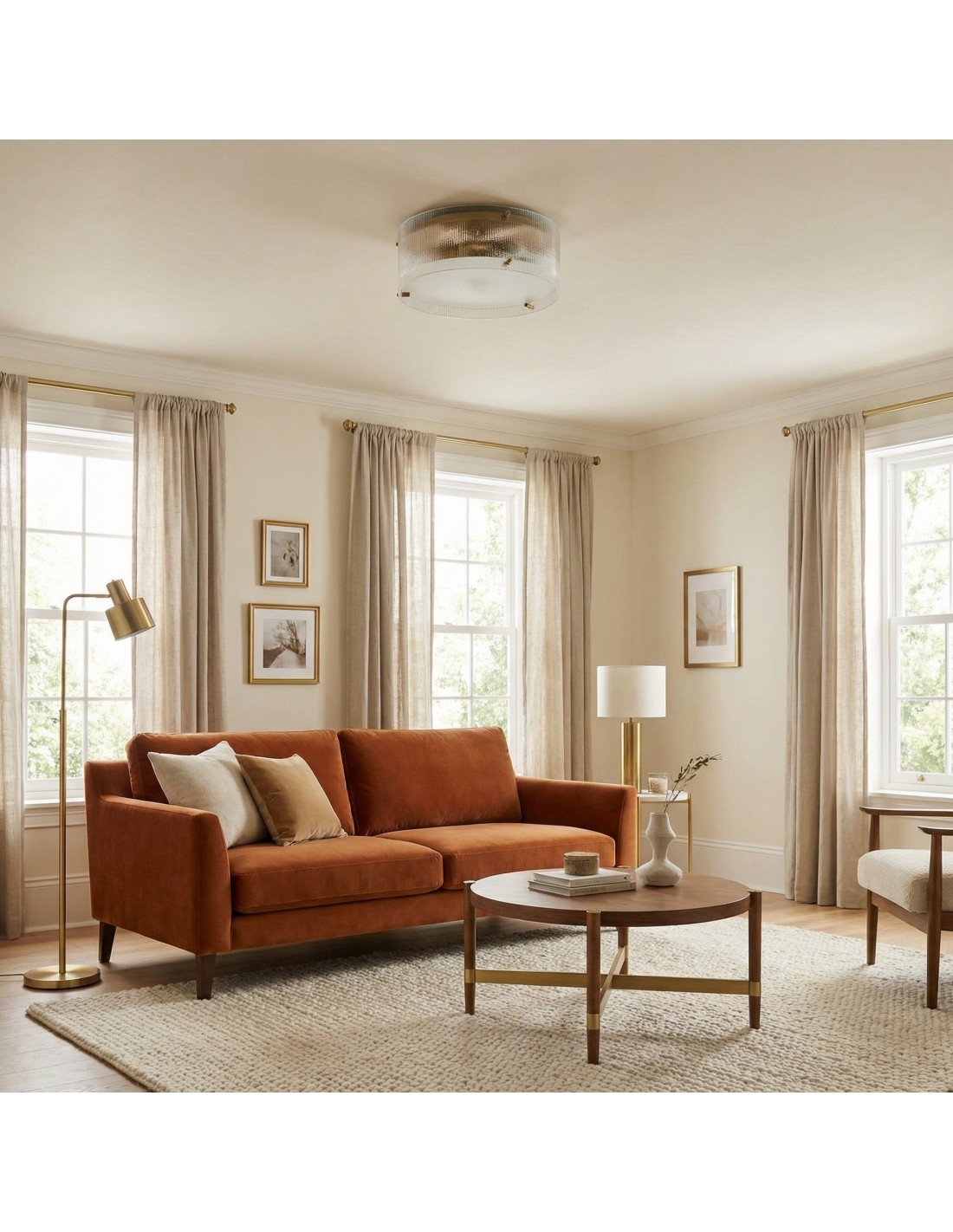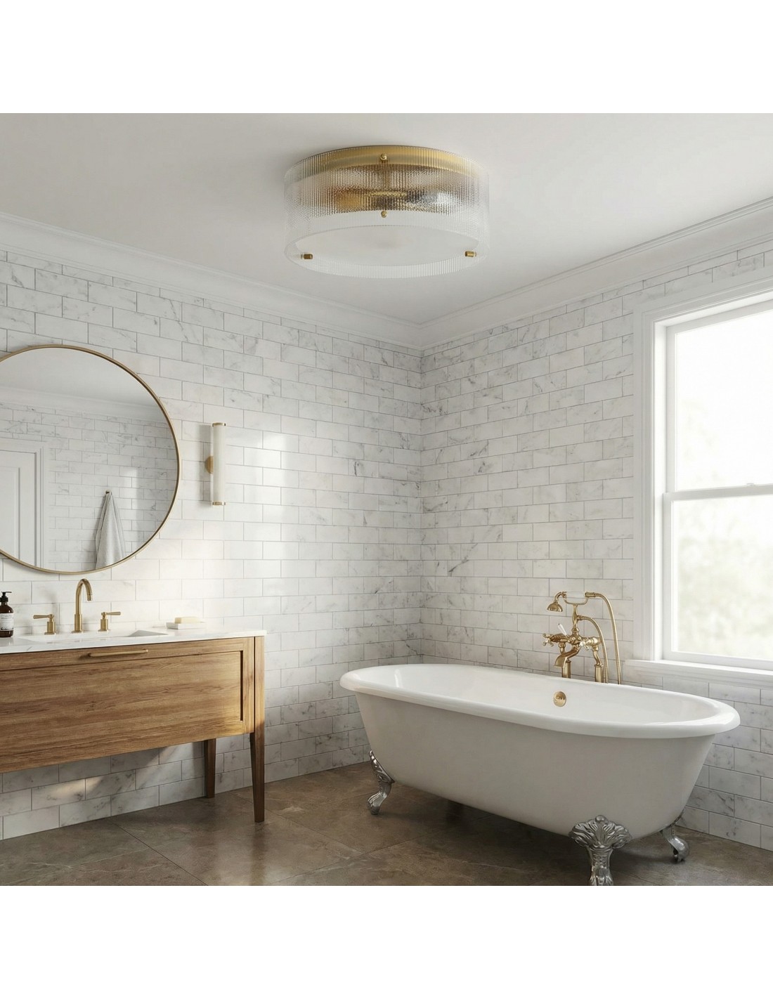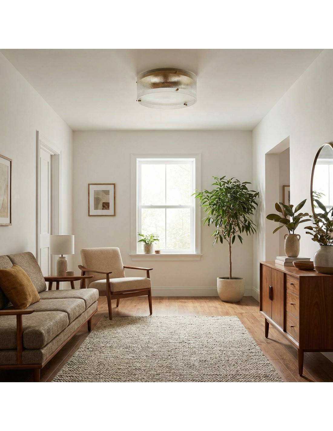 The flush-mount design keeps ceilings visually clean while maximizing room height, making it ideal for spaces with lower ceilings or compact layouts. Light pours through the fluted glass, producing a gentle ambient wash that highlights walls, architectural details, and decor.