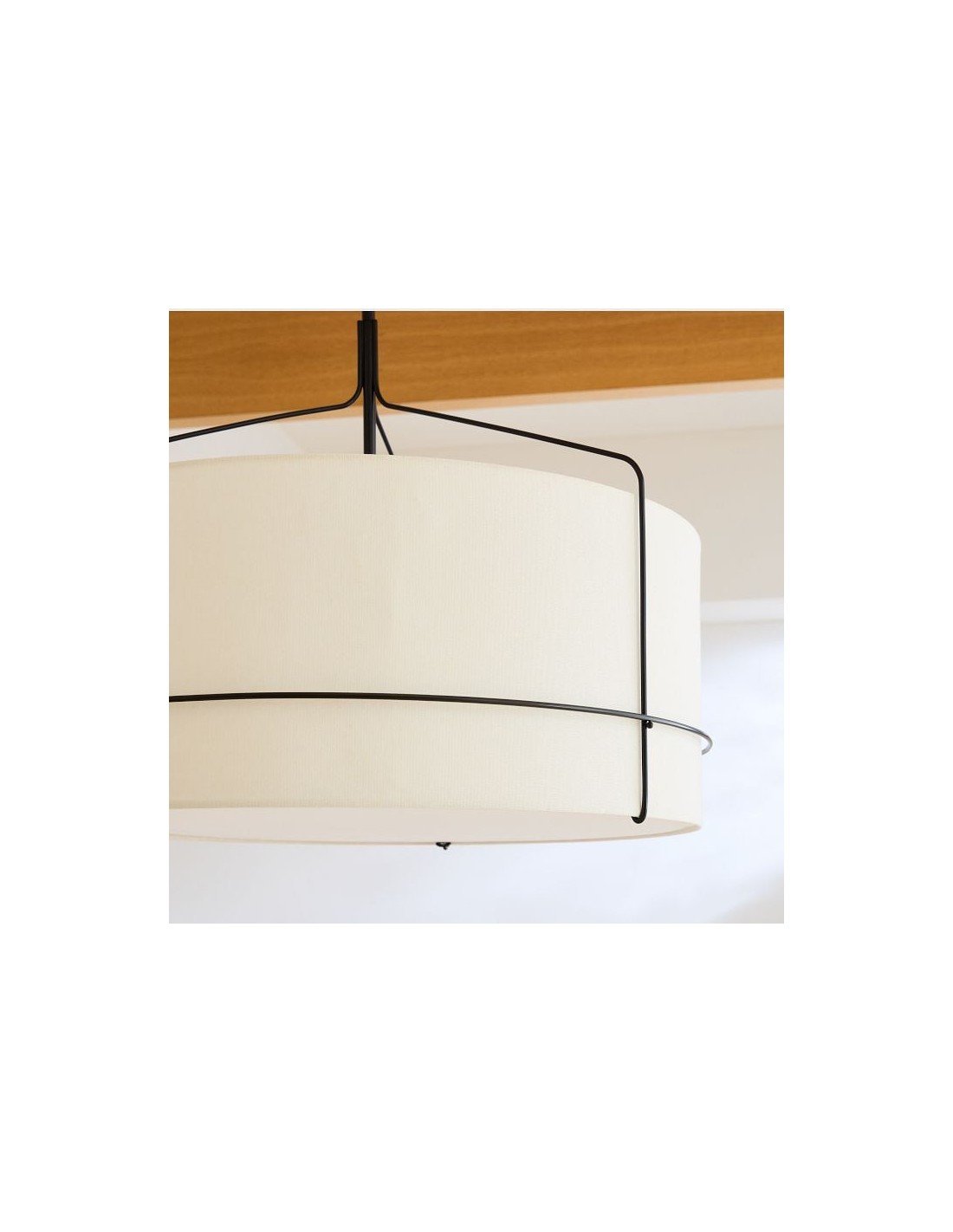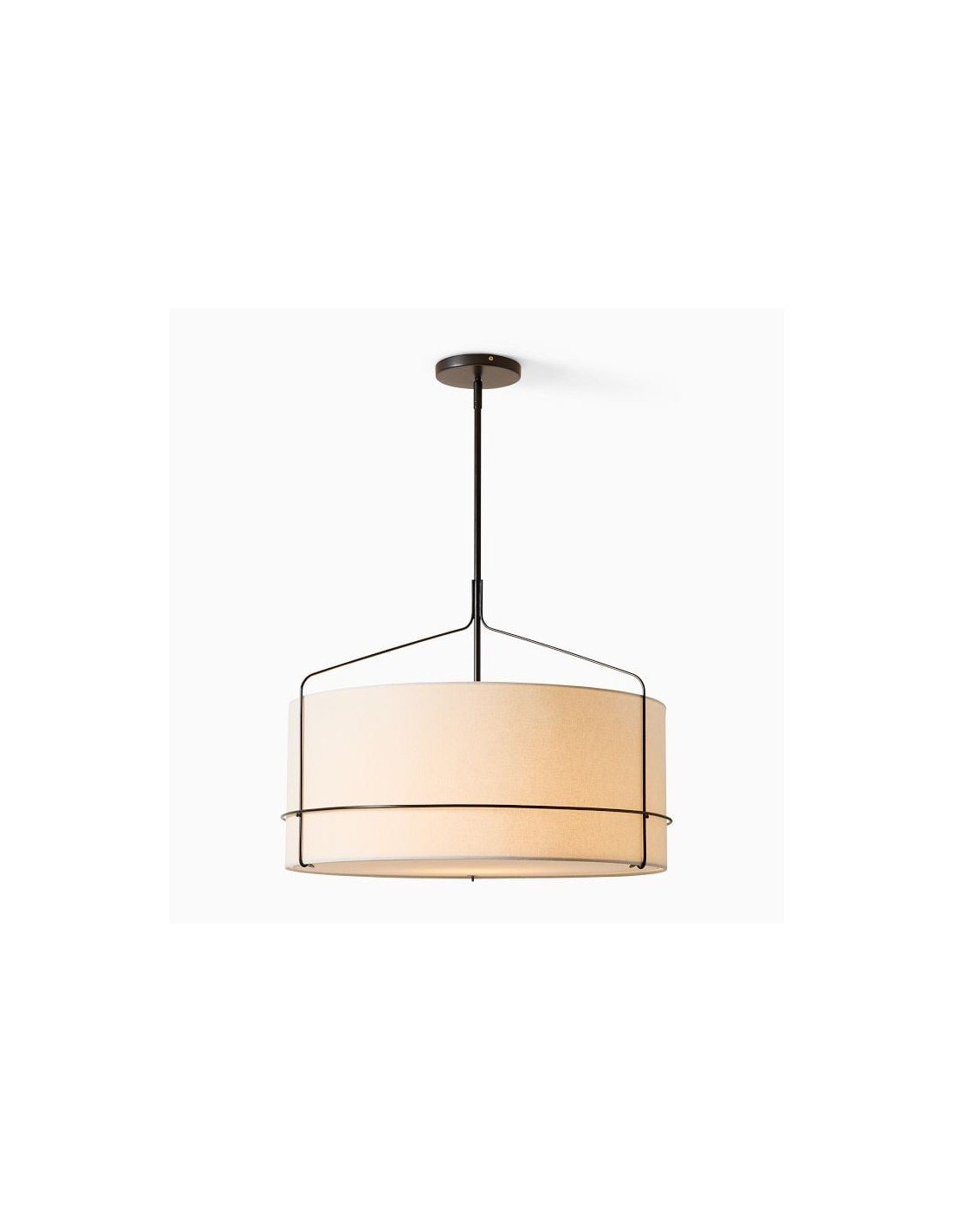 The Pendant adds warm, comfortable light to entries, kitchens, or bedrooms. Its exposed metal frame delivers industrial charm, complemented by a dark bronze finish on the metal body and canopy, plus a white linen shade.