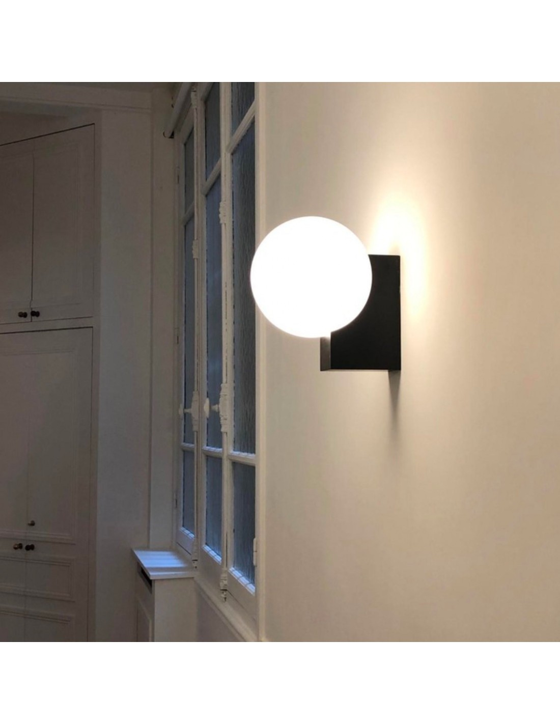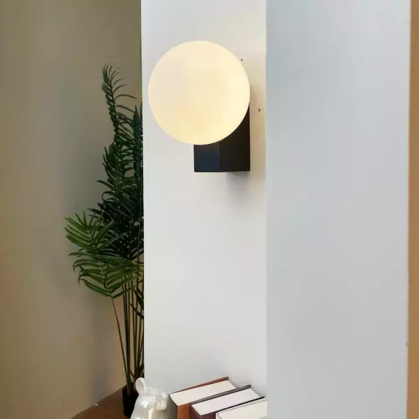 Elevate your space with the Minimalist Spherical Wall Lamp. Its sleek design seamlessly combines a round, opal glass lampshade with a rectangular base, adding a modern twist to timeless geometry. This versatile lamp provides a soft glow for reading or ambient lighting, bringing a touch of elegance to any room.