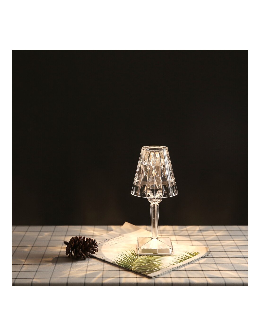 The charming Battery LED Table Lamp, a portable table light, creates a beautiful shadow, making people intoxicated and showing the art of the whisky glass. It is innovative and chic.