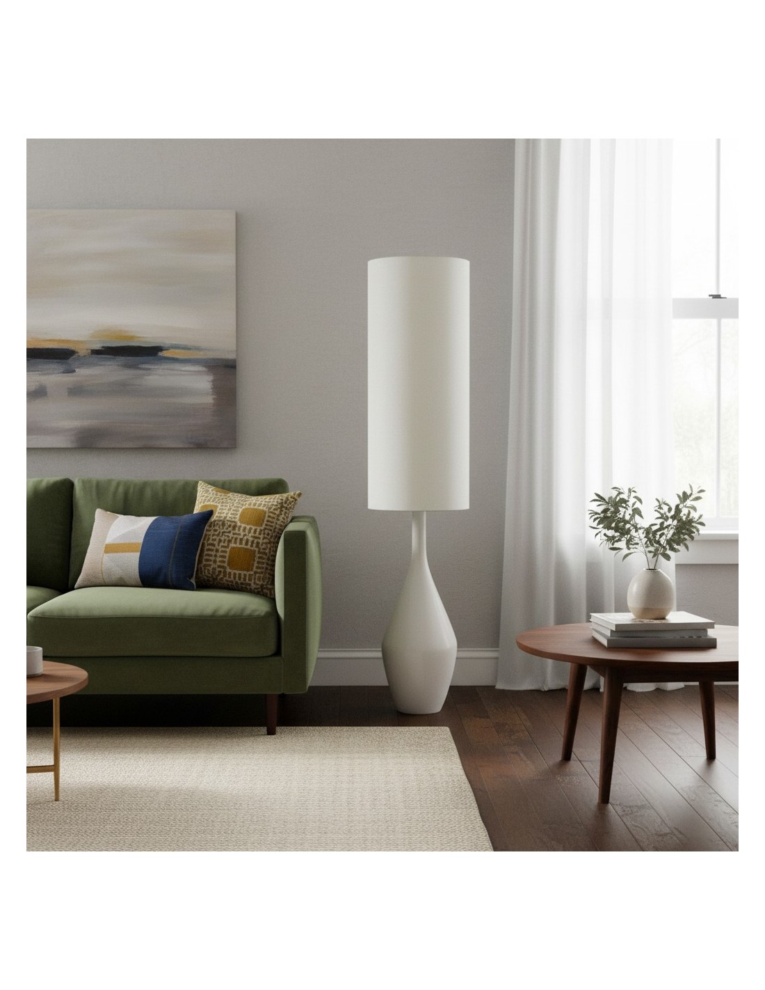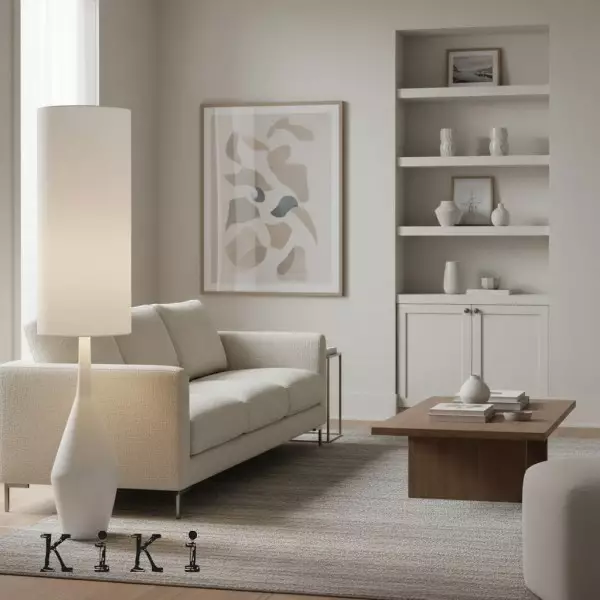 Experience organic modern design with our Asymmetrical Sculptural Floor Lamp. Its handcrafted, textured base and crisp linen shade cast a warm, inviting glow. A minimalist statement piece, this lamp adds artistic flair to any living room or bedroom, perfect for creating a serene sanctuary.