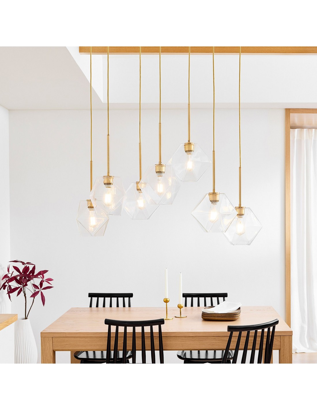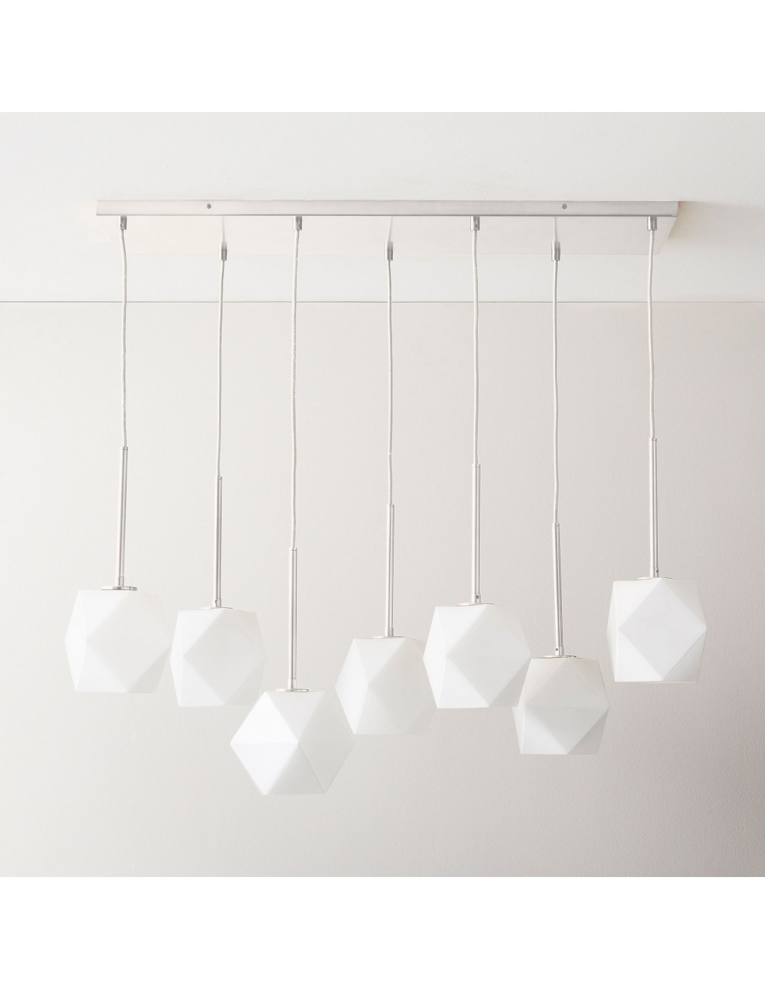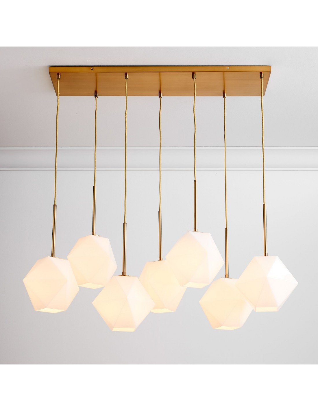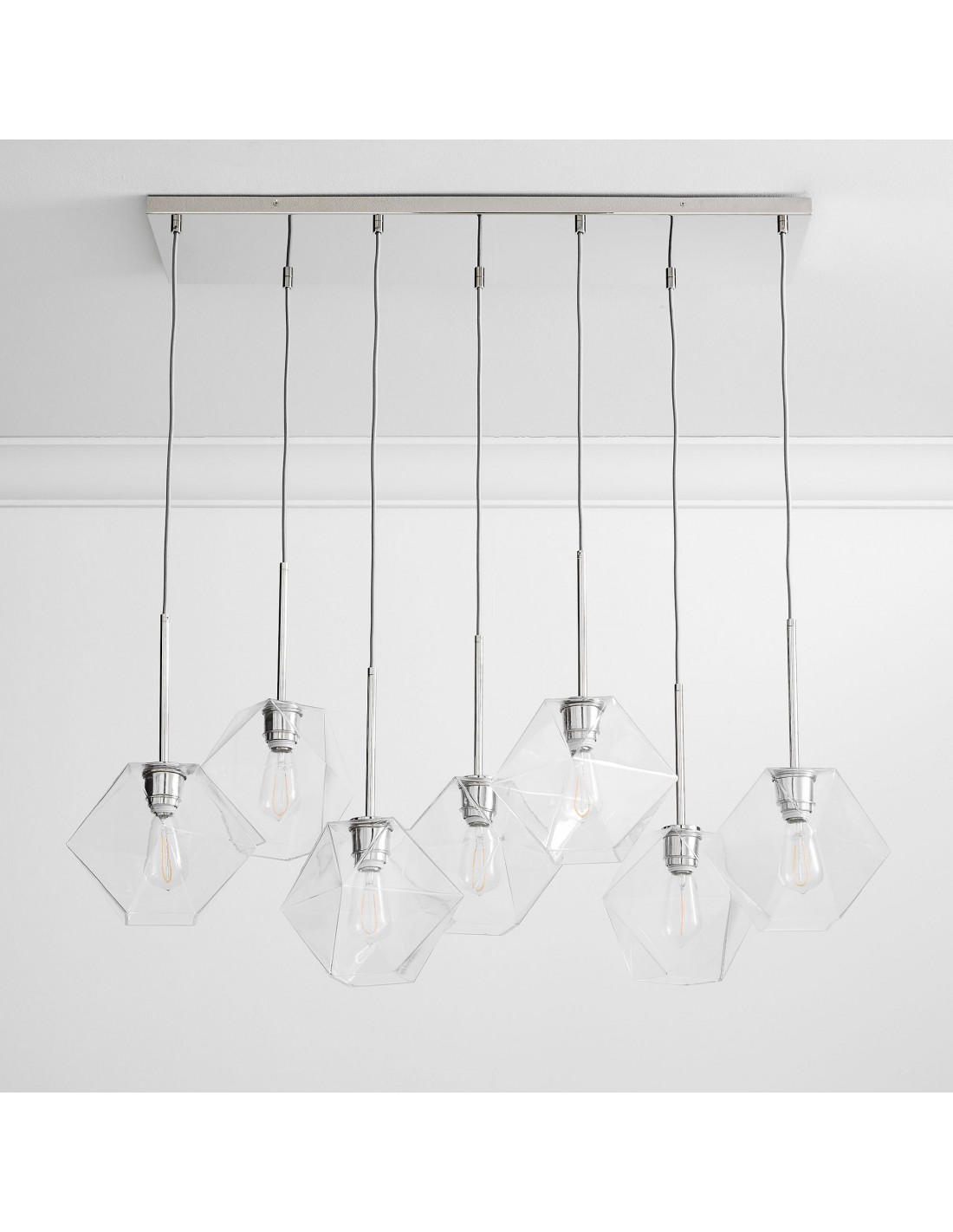 Featuring sculptural lines and faceted prismatic glass, this chandelier adds depth and brilliance to any interior. Its seven-light design delivers ambient lighting that complements contemporary, minimalist, or transitional spaces with effortless elegance.