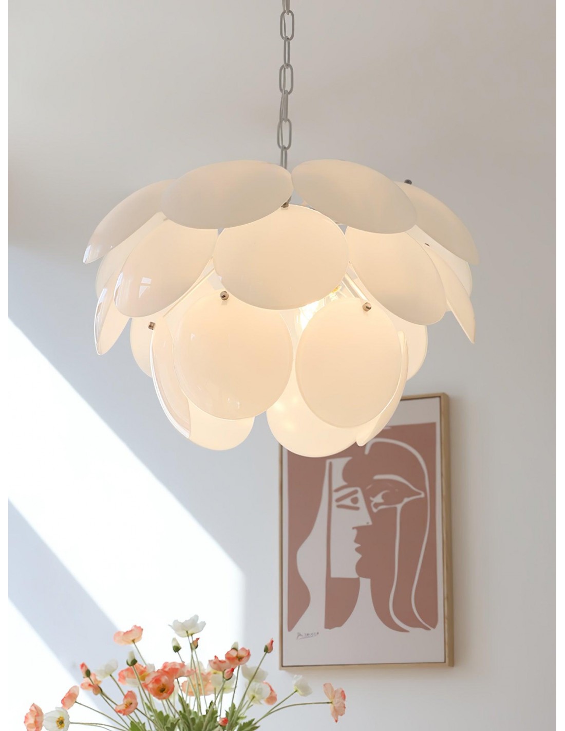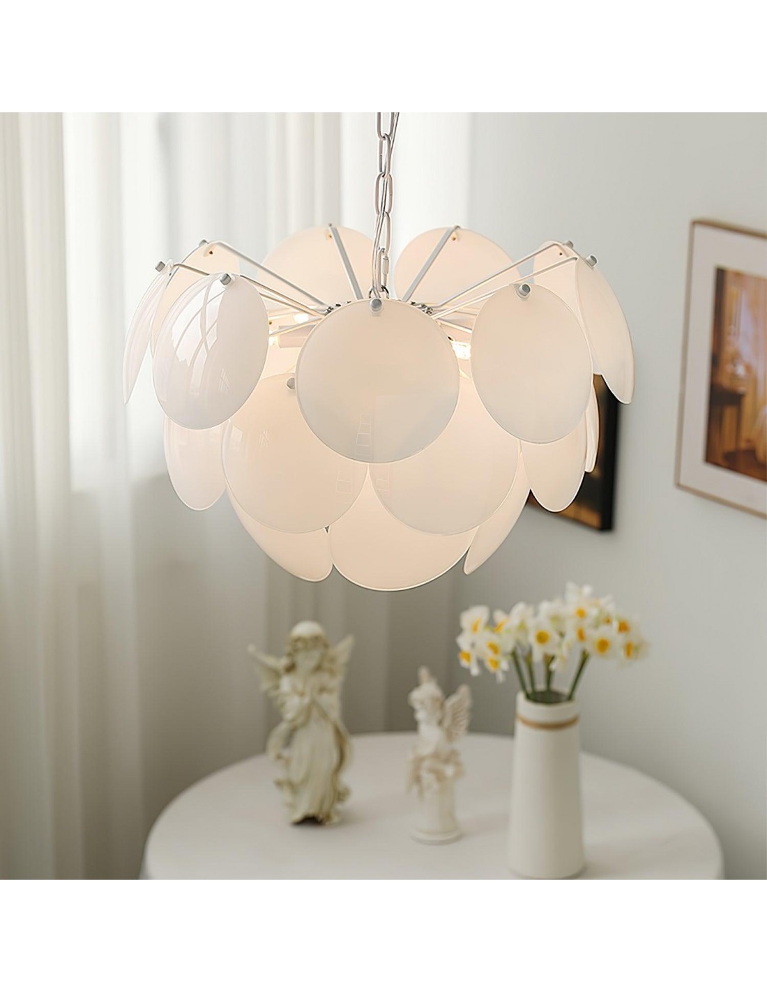 The Luminous Petal Glass Chandelier is a delicately modern lighting piece that elegantly fuses glass and metal. Inspired by the soft curves of petals in nature, each glass element mimics the gentle shape of a petal, supported by a robust metal framework that grounds the whimsical design.