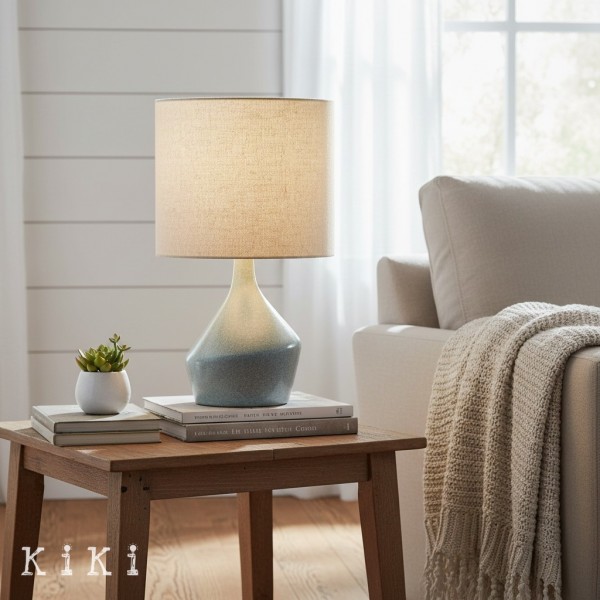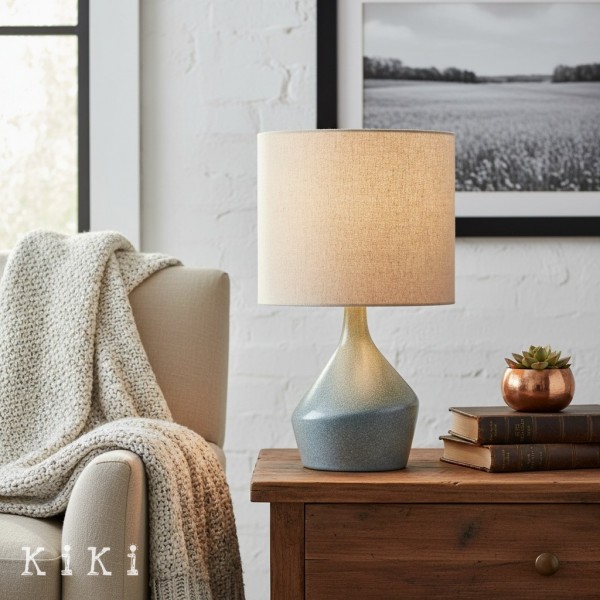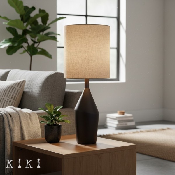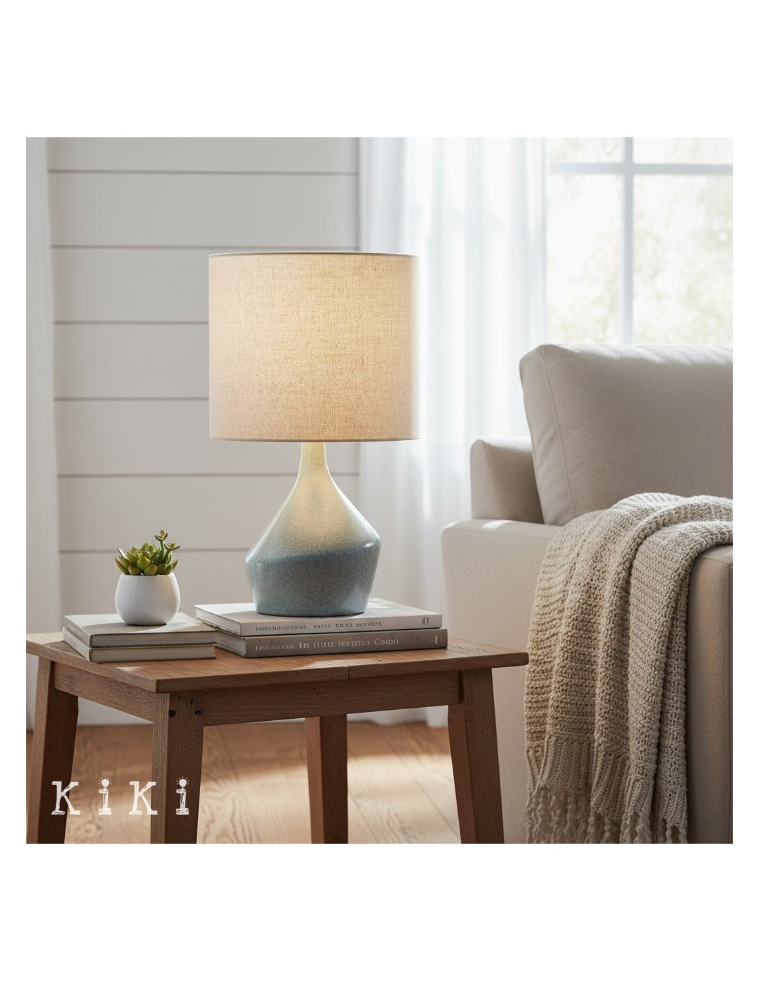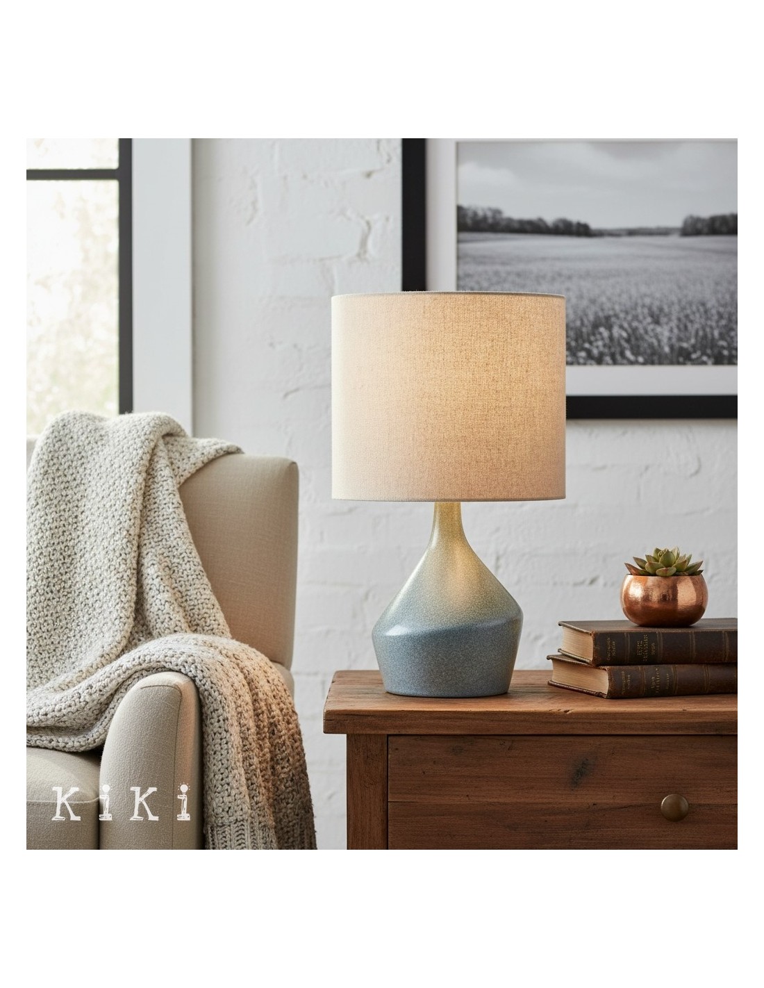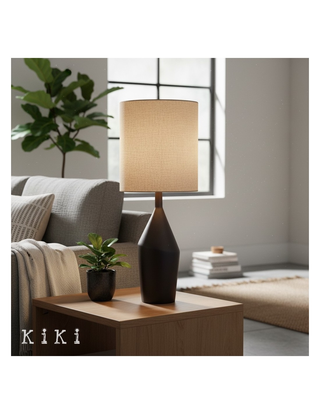 The Lumo table lamp combines a handcrafted ceramic base with a textured linen shade, creating a distinctive sculptural piece. Its asymmetrical, organic shape offers a dynamic visual interest, while the shade delivers soft, warm ambient light, ideal for living rooms, home offices, bedrooms, or reading corners.