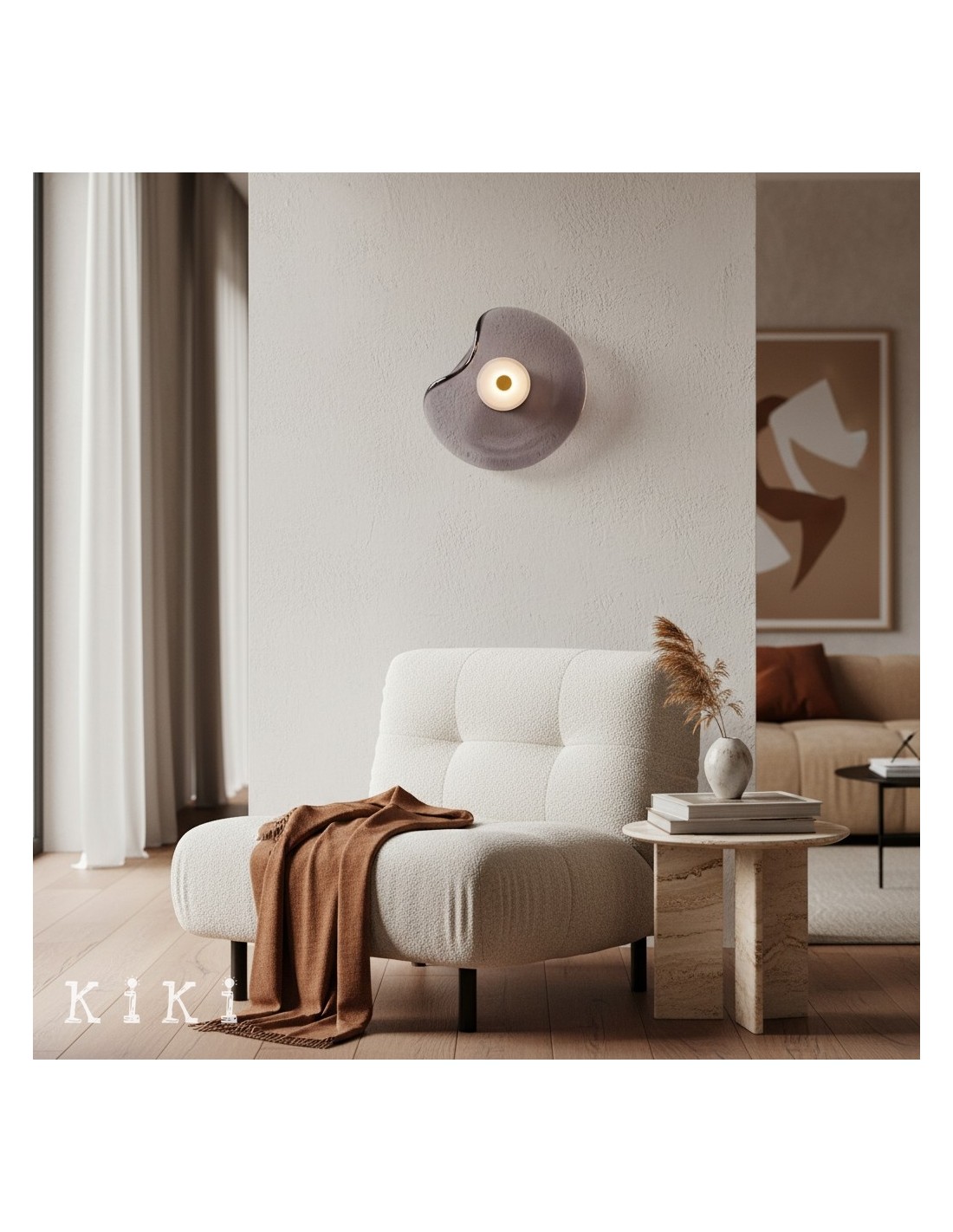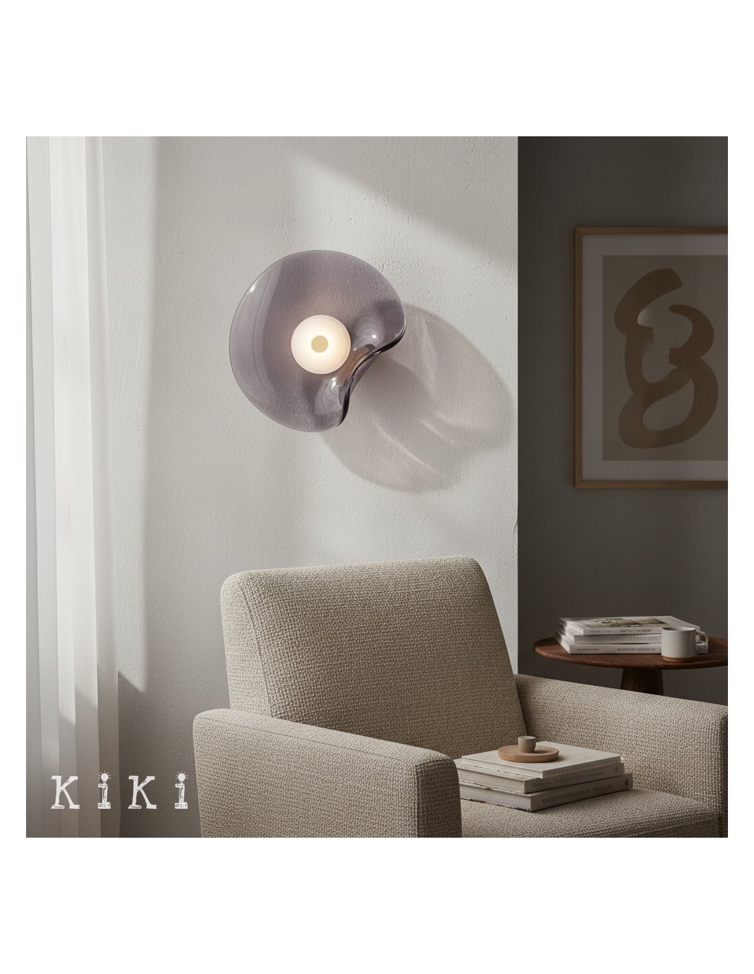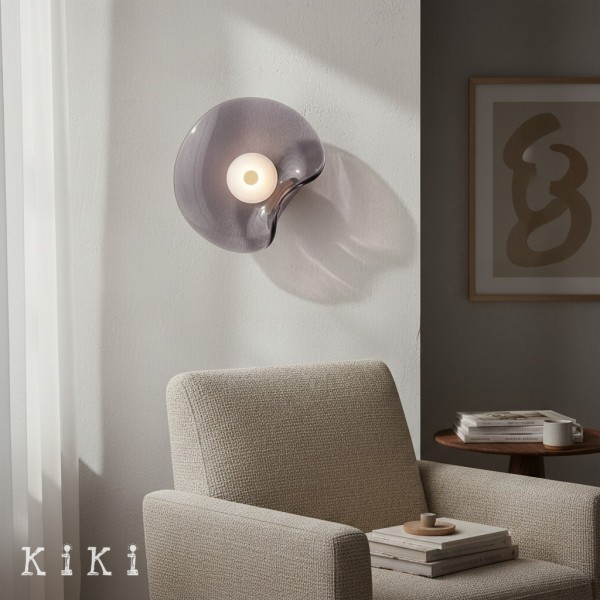 Designed for interiors that value atmosphere and visual impact this modern wall light brings a refined sculptural presence to the wall. The curved glass form draws inspiration from cosmic movement creating a soft flowing outline that enhances contemporary spaces.