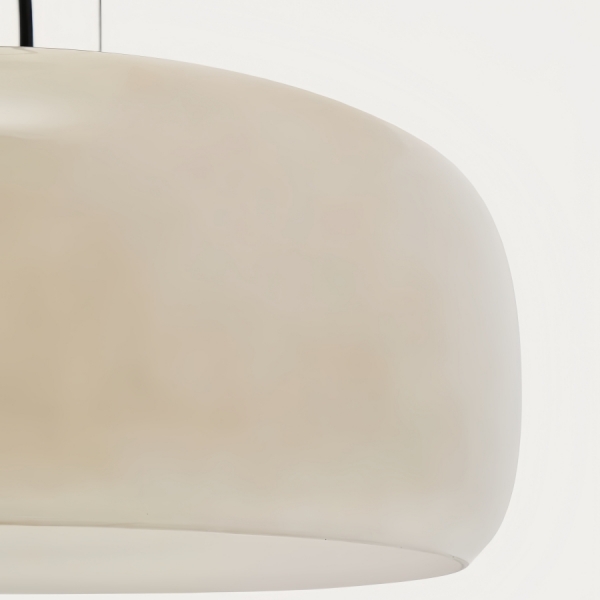 The Lunorae Pendant Lamp features smooth, rounded glass shades with a gracefully balanced silhouette. Its sculptural form brings elegance and warmth, adding refined character to dining rooms, living areas, and modern interiors.